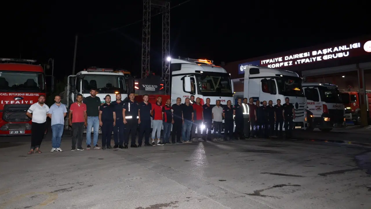 Kocaeli Büyükşehir Belediyesi Yol ve Bakım Dairesi Başkanlığı bünyesindeki A Takımı ekipleri; arazözler, lovbet taşıyıcı, ekskavatör, dozer ve 4x4 öncü araçlardan oluşan konvoyla yangın bölgesine doğru hareket etti. İlçe belediyelerinden de takviye güçlerin destek verdiği ekip, Körfez’de toplandı ve gece yarısında yangın bölgesine harekete geçti. Aynı zamanda, Kocaeli Büyükşehir Belediyesi İtfaiye Daire Başkanlığı’na bağlı yangın söndürme ekipleri de araç ve personel desteğiyle bölgeye sevk edildi.