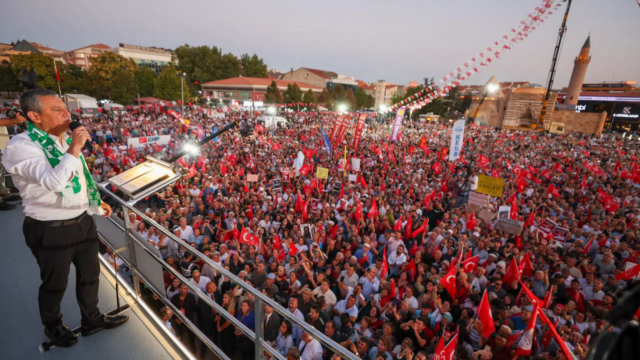 “Gençler diyor ki, ‘Mustafa Kemal’in askerleriyiz.’ Biz 150 yıldır bu topraklarda aydınlanmayı, demokrasiyi, Meclis’i, seçimi, sandığı savunanlarız. Ama günü geldiğinde de bu ülkeyi en iyi savunanlarız. Biliyorsunuz işgal kuvvetleri geldi, dayandı. Birilerinin çok sevdikleri onlara kırmızı halı serdiler. Birileri Yıldız Sarayı’nın arka kapısından Yunan, İngiliz zırhlısına botla kaçıp gittiler. O işgal kuvvetleri geldiğinde Kartal İslim botunun ucundan bunlara bakıp yanındaki yaverine, ‘Üzülme çocuk. Geldikleri gibi gidecekler’ diyen Gazi’nin partisiyiz biz. Buradan Kırşehir’e sesleniyorum. Üzülmeyin, geldikleri gibi gidecekler. Geldikleri gibi gidecekler. Kırşehirliler, sakın ha sakın bu iktidarı gözünüzde büyütmeyin. Bunlar devletin içine çöreklenen bir avuç çeteden ibarettir. Tüm kötülükler bunların son çırpınışlarıdır. Rakibini hapse atan güçsüzdür. Acizdir. Korkaktır. Baskıyla ayakta kalmaya çalışanlar sadece otokratlardır. Ve demokratlar sandık için gün sayarken, otokratlar zulümlerinin son günlerini yaşarlar. O yüzden asla korkmayalım, asla teslim olmayalım. Biz hep birlikte yürüyeceğiz, hep birlikte başaracağız. Ağlayan anaların gözünün yaşını birlikte durduracağız. Aç karınları birlikte doyuracağız. Pazara gidemeyeni pazara biz çıkaracağız. Kasaba gidemeyeni, kasaba biz götüreceğiz. İşe giremeyeni, işe biz sokacağız. Bu zulümden canı yananın canı olacağız, bağrımıza basacağız. Kutuplaştıran Erdoğan’a inat; kucaklaşmaya, şeytanlaştıranlara inat kardeşleşmeye, bir Kırşehir’i bütün olarak kucaklamaya, AK Partilisi, MHP’lisi, bütün garibanlara sahip çıkmaya, bütün yoksulları yeniden güçlendirmeye, orta direği zenginleştirmeye, gençlerin yüzünü güldürmeye geliyoruz. 100 yıl sonra bir kez daha bu ülkeyi kurtarmaya geliyoruz. Var mısınız? Var mısınız? Hep birlikte yürüyecek miyiz? Ekrem Başkan’la birlikte yürüyecek miyiz? Özgür Başkan’la birlikte yürüyecek misiniz? Cumhuriyet Halk Partisi ile birlikte yürüyecek misiniz? Haydi, o zaman. Yürüyelim arkadaşlar.”