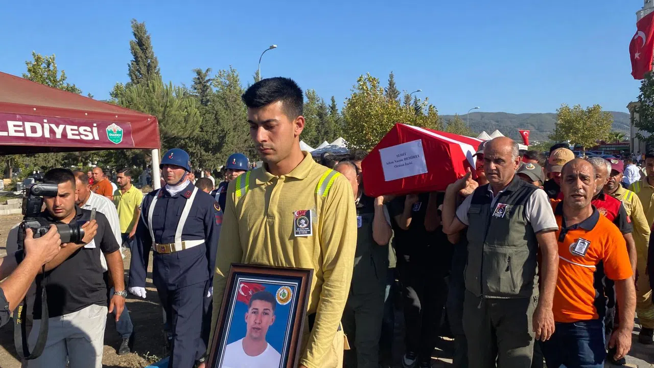 Osmaniye'nin Hasanbeyli ilçesinde sabah saatlerinde yangına müdahaleye giderken arazözün şarampole yuvarlanması sonucu şehit olan orman personeli Adem Nazım Dem...