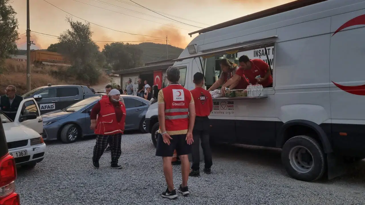 Kızılay, orman yangınlarının devam ettiği Manisa’nın Akhisar ilçesi ve Hatay’ın Antakya ilçesi ile Bilecik Merkez ve Isparta Sütçüler’de beslenme desteğini sürdürürken, bu dört ilde görevlendirilen toplam 14 ikram ve müdahale aracıyla; başta su, içecek, ikramlık ve kumanya olmak üzere yaklaşık 160 bin kişilik yardım ulaştırdı.