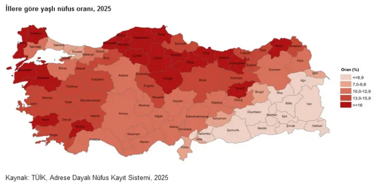 Yaşlı bağımlılık oranı ise 2025'te yüzde 16,2'ye ulaştı.