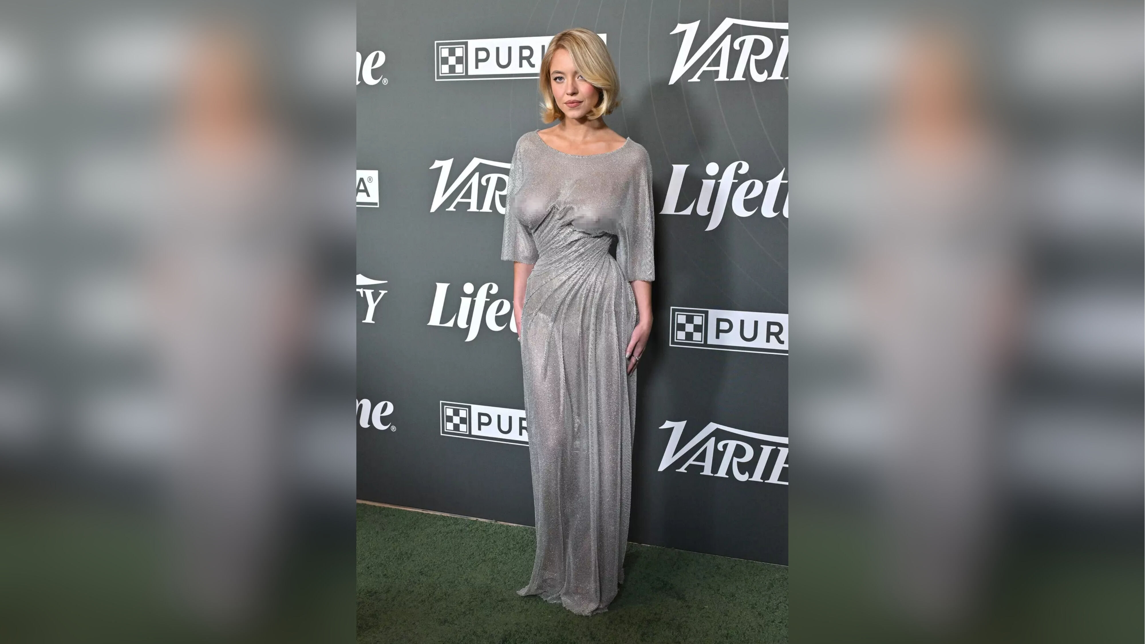Geceye ışıltılı gümüş renkli transparan bir elbiseyle katılan Sweeney, iç çamaşırı kullanmadan giydiği bu tasarımla cesur bir stil sergiledi. Yeni platin sarısı kısa saçlarıyla dikkat çeken oyuncu, sade makyajı ve şık takılarıyla geceye damgasını vurdu.