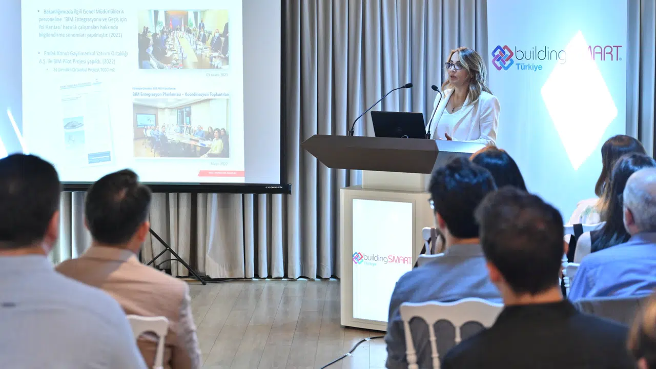 Etkinlikte konuşan T.C. Çevre, Şehircilik ve İklim Değişikliği Bakanlığı Daire Başkanı Buket Sağıroğlu, geliştirilmekte olan e-Proje Yönetim Sisteminin kamu yönetiminin dijital kapasitesini artıracağını ve sürdürülebilir yapılı çevre hedefini destekleyeceğini belirtti.