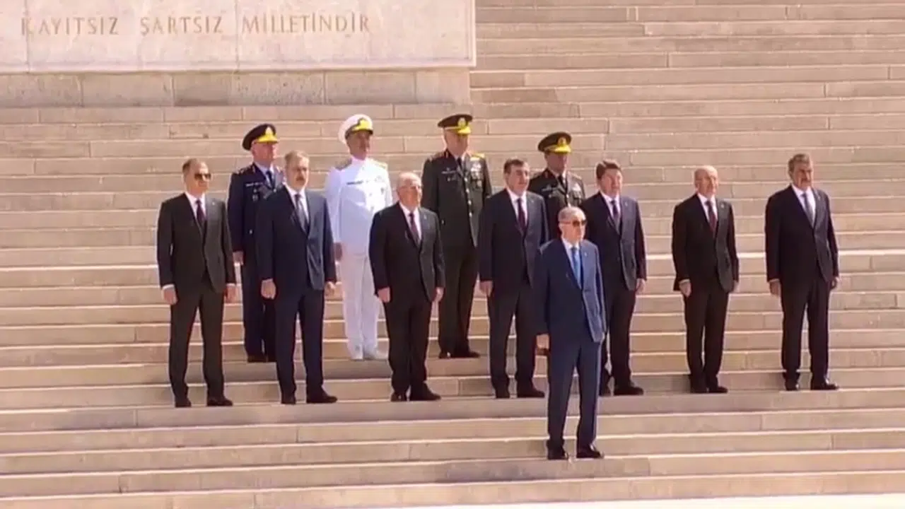 Ziyarete, Cumhurbaşkanı Yardımcısı Cevdet Yılmaz, Adalet Bakanı Yılmaz Tunç, Dışişleri Bakanı Hakan Fidan, Hazine ve Maliye Bakanı Mehmet Şimşek, İçişleri Bakanı Ali Yerlikaya, Milli Eğitim Bakanı Yusuf Tekin, Milli Savunma Bakanı Yaşar Güler, Genelkurmay Başkanı Orgeneral Metin Gürak ve kuvvet komutanları katıldı.