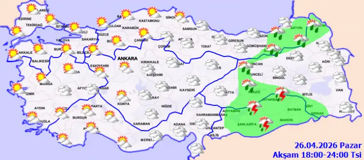 Meteoroloji Genel Müdürlüğüİ 26 Nisan Pazar gününe ilişkin hava tahmin raporunu yayımladı.