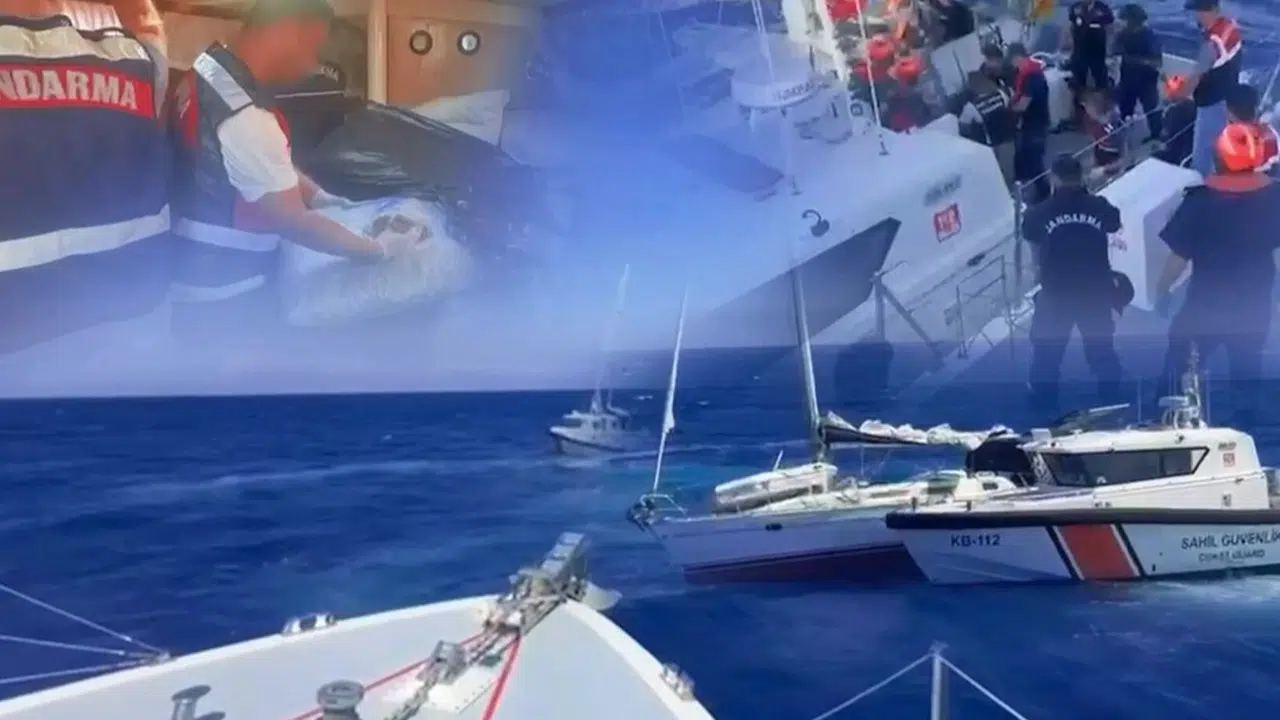 Muğla İl Jandarma Komutanlığı ve Sahil Güvenlik Güney Ege Grup Komutanlığı’nın koordineli çalışması sonucu, uluslararası uyuşturucu tacirlerine ait bir tekne JİHA’larla saniye saniye izlendi ve denizden operasyon düzenlendi.