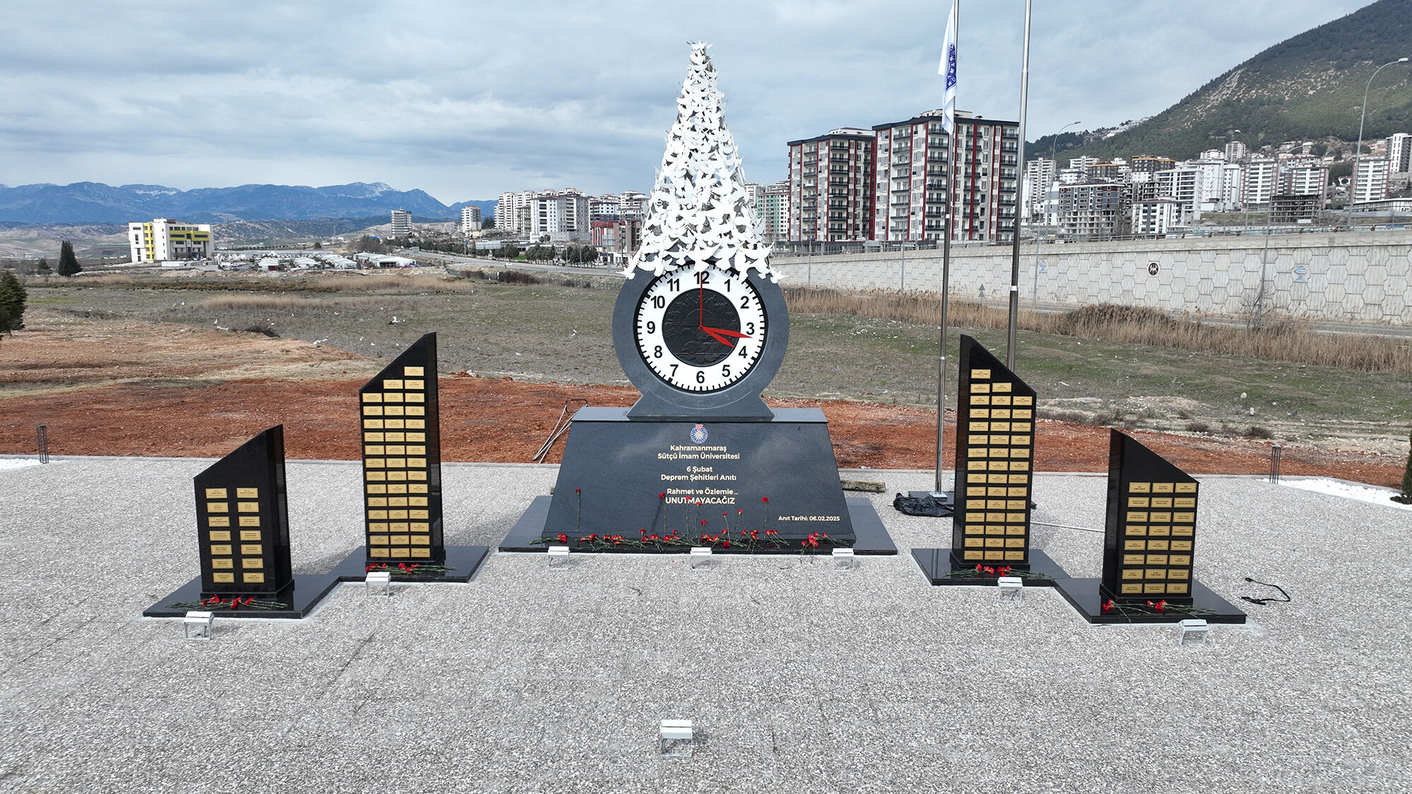 Konferansın ardından KSÜ Avşar Kampüsü’nde, 6 Şubat depremlerinde hayatını kaybedenlerin anısına inşa edilen Deprem Anıtı’nın açılışı yapıldı. Törene şehir protokolünün yanı sıra vatandaşlar da katılırken duygu dolu anlar yaşandı. Anıt, depremde hayatını kaybedenlerin anısını yaşatmanın yanı sıra, doğal afetlere karşı farkındalığı artırmayı da amaçlıyor. Düzenlenen bu iki anlamlı etkinlikle birlikte, 6 Şubat depremlerinin ikinci yıl dönümü anma programları sona erdi.