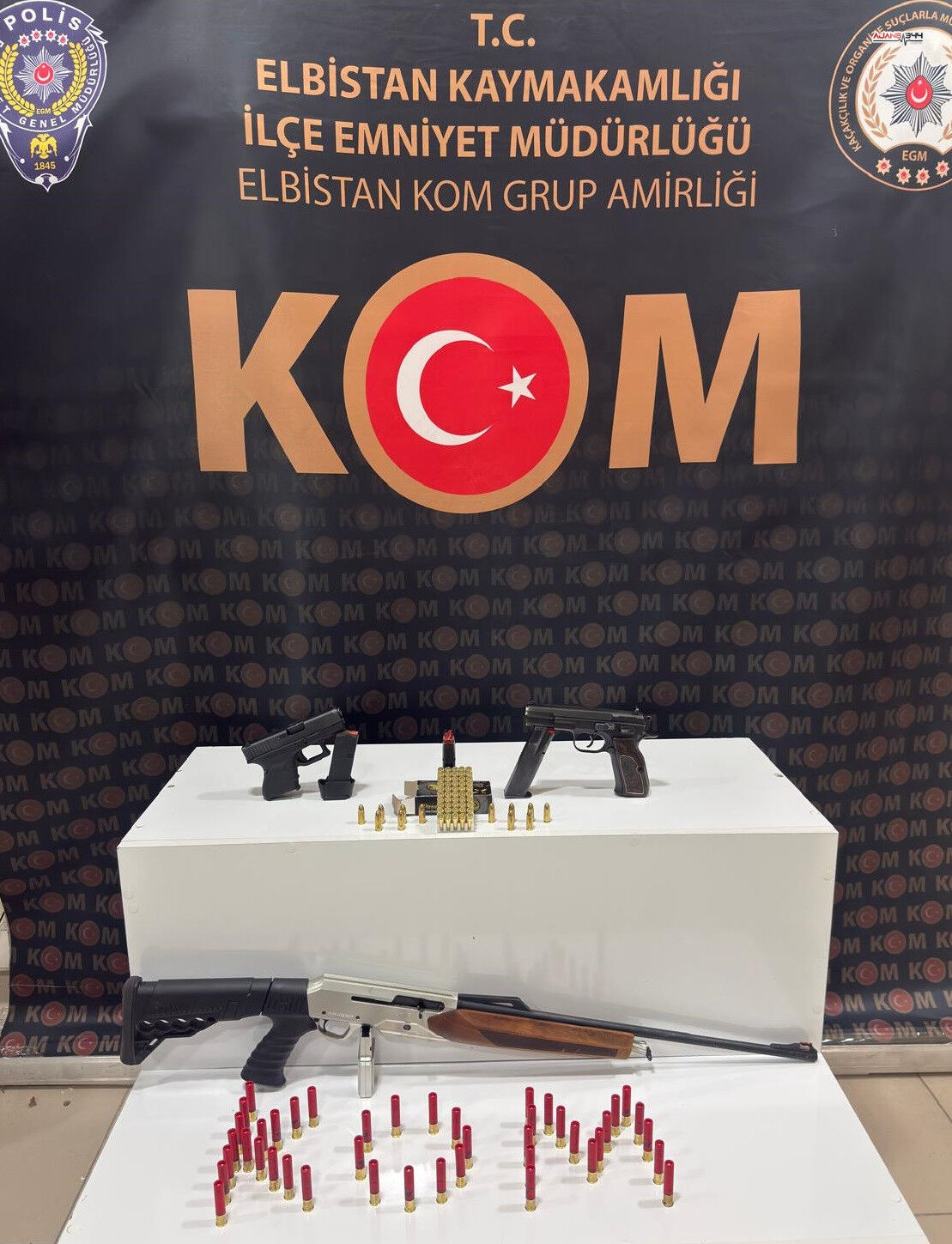 Elbistan Kaymakamlığı İlçe Emniyet Müdürlüğünden edinilen bilgilere göre yapılan aramalarda 2 adet ruhsatsız tabanca, 3 adet tabanca şarjörü, 1 adet yivsiz tüfek, 1 adet yivsiz tüfek şarjörü, 62 adet tabanca fişeği ve 43 adet tüfek fişeği bulundu. Ele geçirilen silah ve mühimmatlara el konulurken, olayla bağlantılı olduğu tespit edilen iki kişi gözaltına alındı.