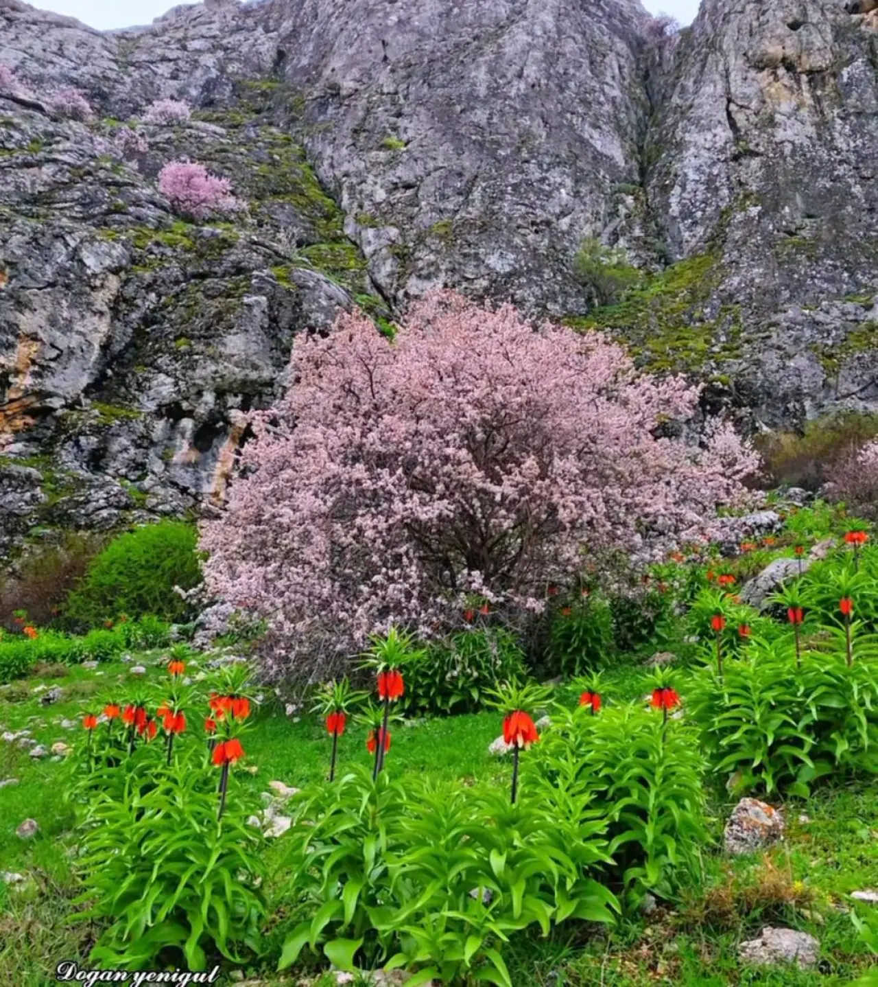 Kahramanmaraş’ın Afşin ilçesinde baharın gelişi doğrudan gözlemlendi. Doğada açan ters laleler, bölgeye estetik bir görünüm kazandırdı.