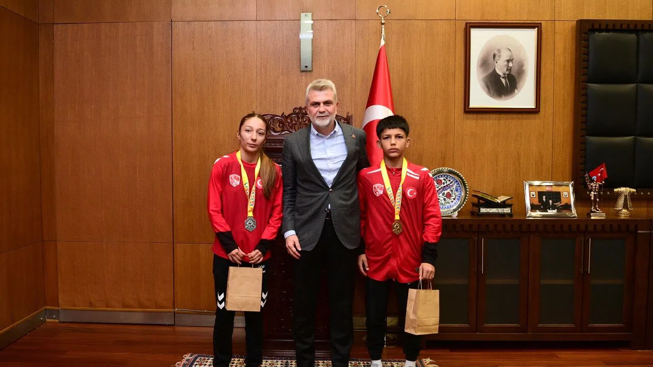 Kahramanmaraş Büyükşehir Belediye Başkanı Fırat Görgel, Romanya’da düzenlenen U17 Güreş Balkan Şampiyonası’nda Türkiye’ye büyük gurur yaşatan Şamil Şahan, Hatice Kazmacı ve İbrahim Bera Kıvrak’ı makamında ağırladı. Genç sporcuları tek tek kutlayan Görgel, bu başarının hem şehir hem de ülke adına büyük anlam taşıdığını söyledi.