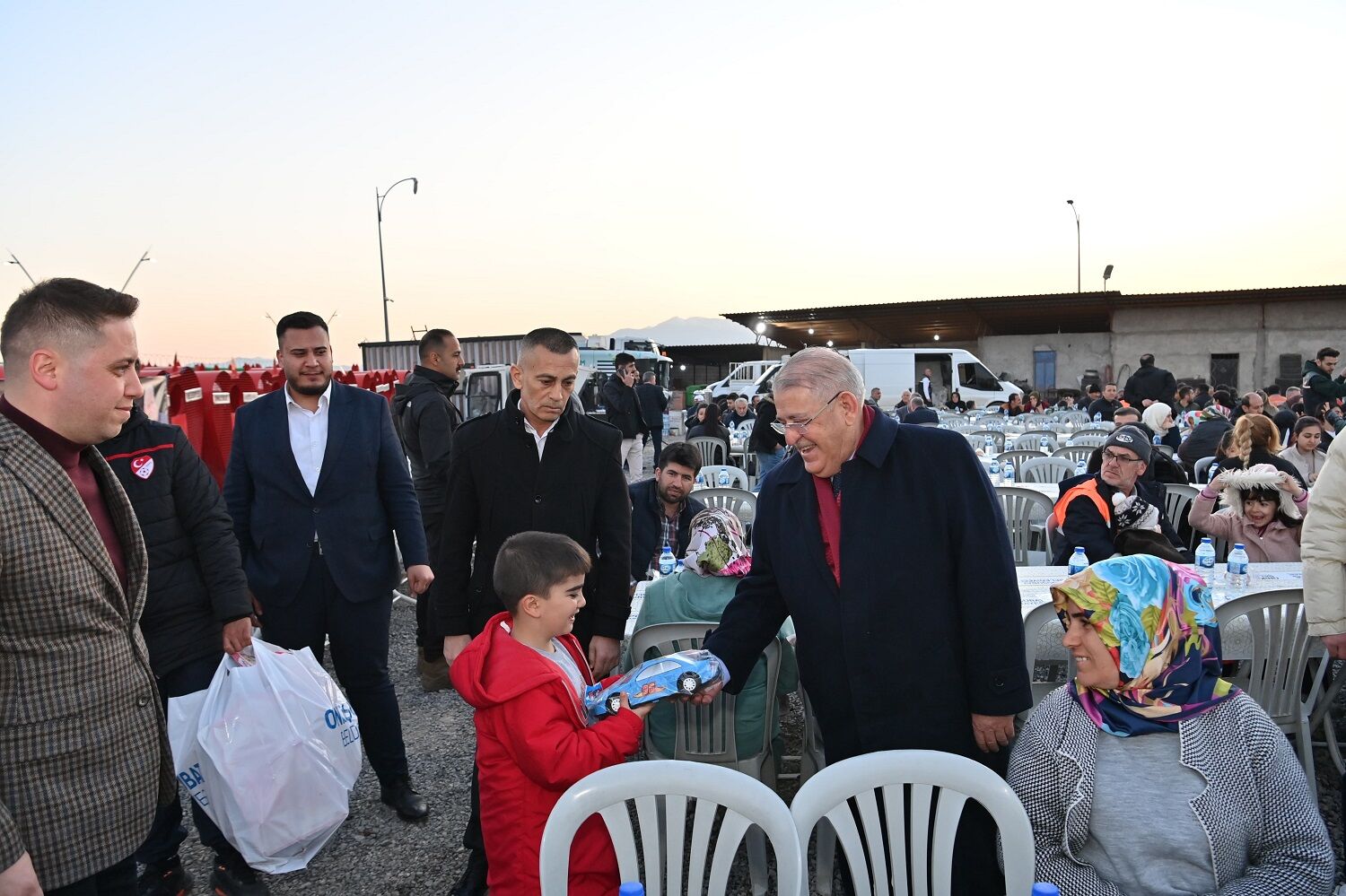 Diğer arkadaşlarım mazur görsün lütfen, temizlik işlerinde çalışan arkadaşlarım benim yanımda daha kıymetlidir. Çünkü onlar biraz daha zor görev yaparlar. O temizlik arabalarının arkasında o kötü kokuları teneffüs ederek hizmet ederler. Mahallelerin, semtlerin temizliğini onlar yaparlar. Dolayısıyla bugün onlara küçük birer hediyemiz de olacak inşallah. Sizlere Cenab-ı Hak'dan tekrar hayırlı Ramazanlar diliyorum. Çocuklarınızla, ailelerinizle beraber sağlık içerisinde, güzellikler içerisinde güzel ömürler, hayırlı ömürler temenni ediyorum. Sağlık içinde kalın, güzellikler içerisinde kalın. Ayağınıza taş değmesin inşallah. Hoşça kalın, sefalarla kalın.”