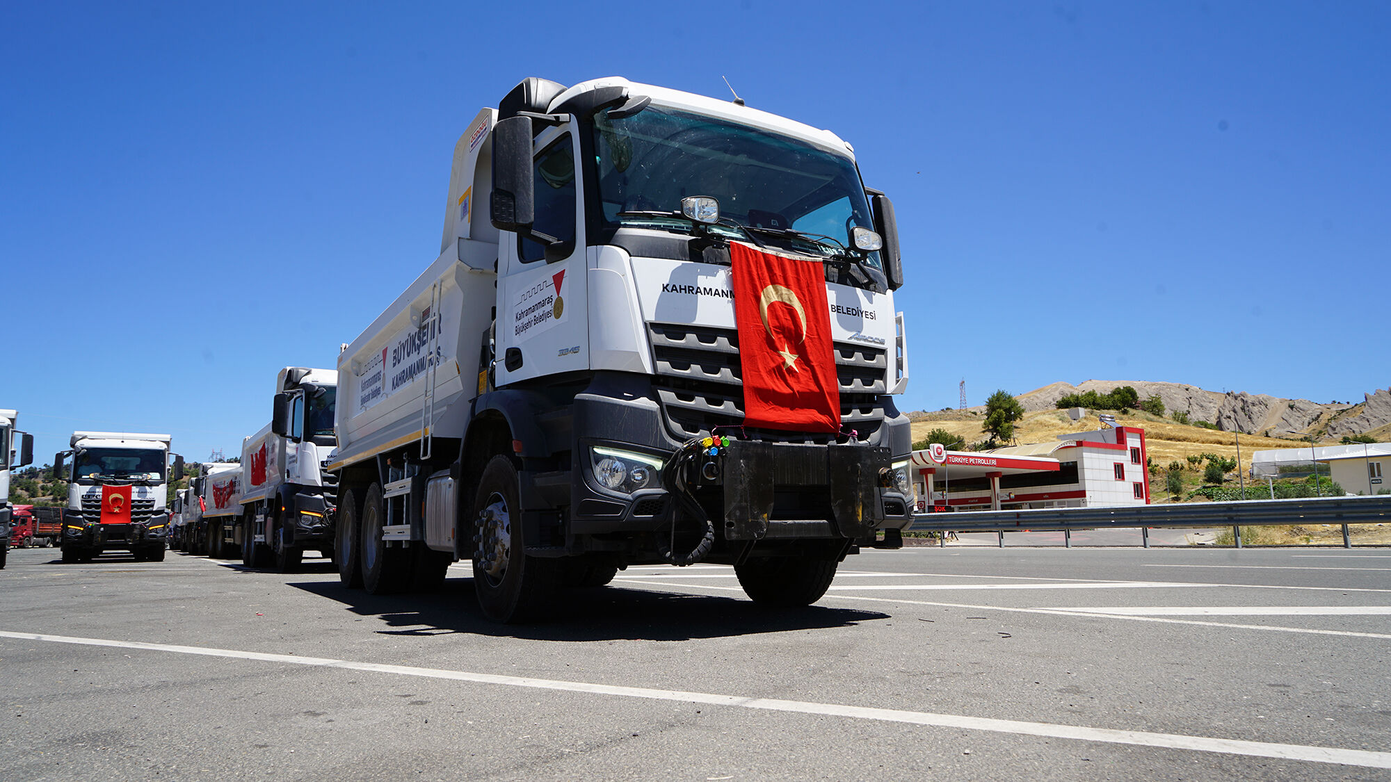 Kahramanmaraş Büyükşehir Belediyesi, şehir genelindeki hizmet kalitesini artırmak ve daha etkin bir çalışma ortamı oluşturmak amacıyla araç filosunu güçlendirmeye devam ediyor. Bu kapsamda belediyenin filosuna 10 yeni kamyon ve 1 adet arazöz daha dâhil edildi. Modern teknolojiyle donatılmış araçlar, şehrin dört bir yanında sürdürülen yatırımlarda aktif olarak görev yapacak. Yeni araçların hizmete alınmasıyla birlikte özellikle yol yapım, bakım ve onarım faaliyetleri ile birlikte kış aylarında yürütülen karla mücadele çalışmaları daha hızlı ve etkin bir şekilde yürütülecek. Kamyonlar, alt ve üstyapı projelerinde malzeme naklinden saha çalışmalarına kadar birçok alanda kullanılacakken, arazöz ise tozla mücadele, temizlik ve sulama işlemlerinde görev alacak.