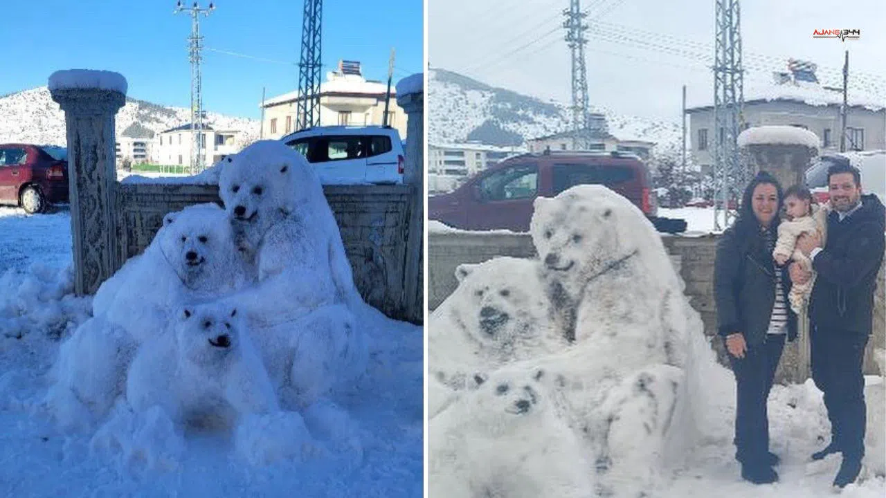 Kahramanmaraş'ın Göksun ilçesinde, Turnabucağı Ortaokulu'nda görev yapan Görsel Sanatlar Öğretmeni Güven Güzeltepe, kar yağışını bir sanat eserine ve ailesiyle unutulmaz bir anıya dönüştürdü. Güzeltepe, eşi ve oğluyla birlikte evlerinin önüne kardan üç kutup ayısı heykeli yaparak, mahalle sakinlerinin ve sosyal medya kullanıcılarının büyük beğenisini topladı.