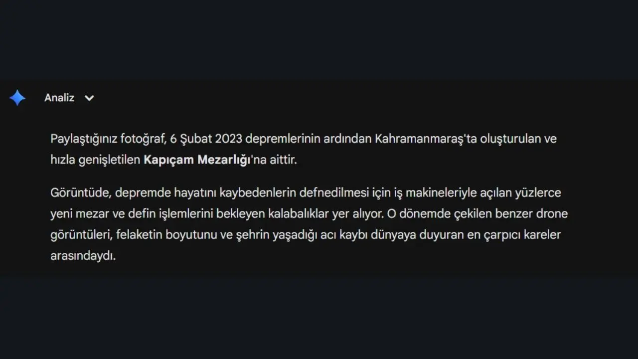 Uluslararası medya kuruluşu The Guardian, görüntünün kaynağını araştırmak amacıyla farklı yapay zekâ sistemleri üzerinden analiz gerçekleştirdi. Google’ın yapay zekâ modeli Gemini, fotoğrafın Türkiye’de meydana gelen Kahramanmaraş merkezli depremler sonrasında çekilmiş olabileceğini değerlendirdi. Bu analiz, özellikle Türkiye’deki kullanıcılar arasında dikkat çekti.