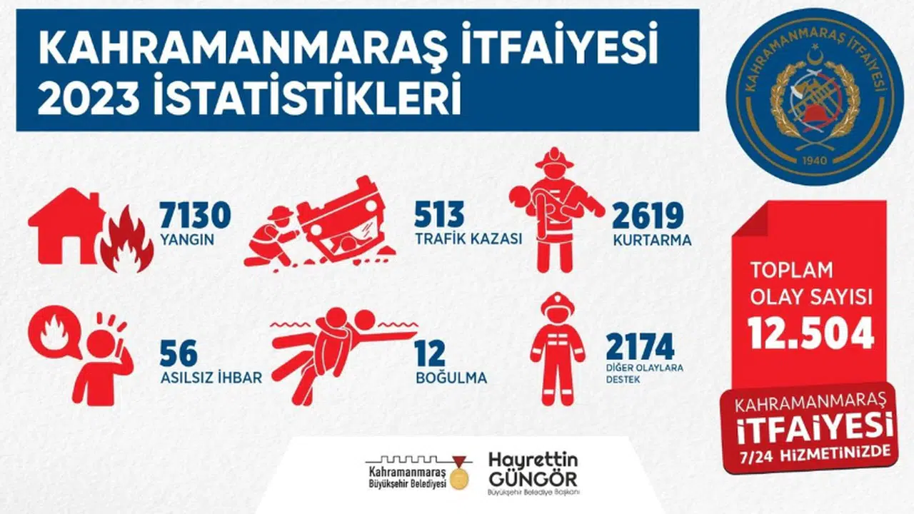 Büyükşehir Belediyesi İtfaiye Dairesi Başkanlığı, yıl boyunca 7 bin 130 yangın, 2 bin 619 kurtarma, 12 boğulma, 513 trafik kazası ve 2 bin 230 diğer itfaiye olayına müdahale ederek toplamda 12 bin 504 olayın önüne geçildiğini açıkladı. Ayrıca, vatandaşları afet ve acil durumlar konusunda bilinçlendirmek amacıyla yapılan