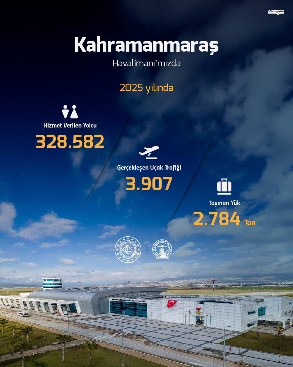 2025 yılı içinde Kahramanmaraş Havalimanı'nda toplam 3 bin 907 uçak trafiği kaydedildi. Yolcu taşımacılığının yanı sıra kargo faaliyetleri de dikkat çekti. Aynı dönemde havalimanı üzerinden 2 bin 784 ton yük taşındı. Bu veriler, havalimanının hem yolcu hem de ticari anlamda önemli bir lojistik merkez haline geldiğini ortaya koydu.