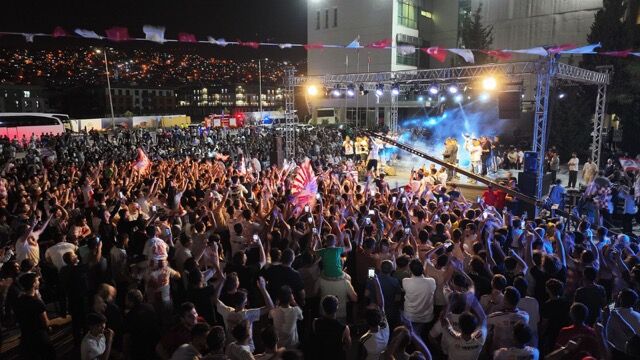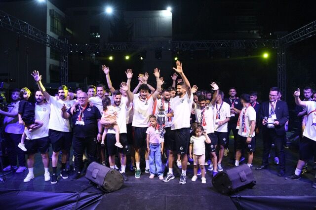 Milli İrade Meydanı’nda düzenlenen şampiyonluk programında, futbolcular ve teknik heyet sahneye tek tek davet edilerek taraftarları selamladı.