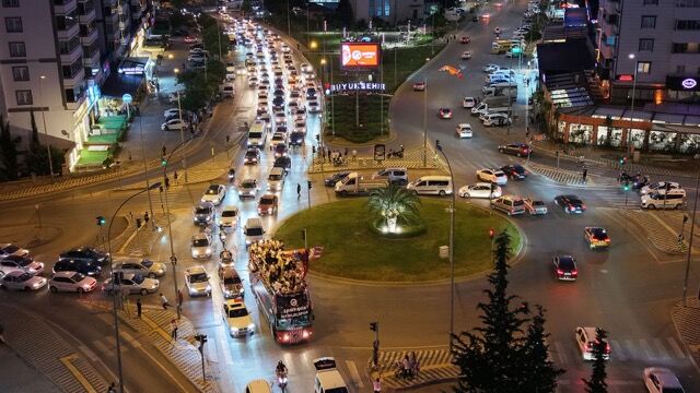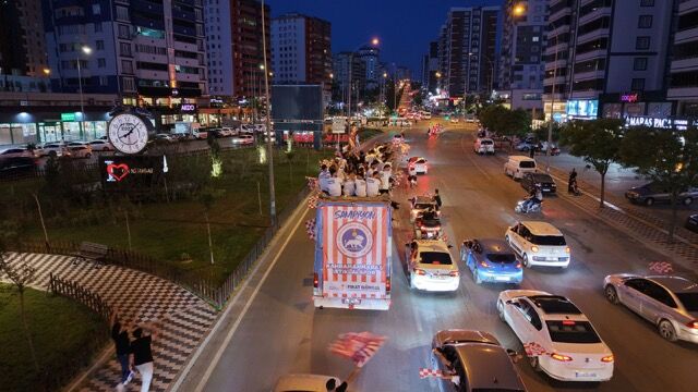 Ardından takım, üstü açık otobüsle şehir turuna çıkarak adeta bir zafer yürüyüşü gerçekleştirdi. Kafileye yüzlerce araçlık taraftar konvoyu eşlik etti.