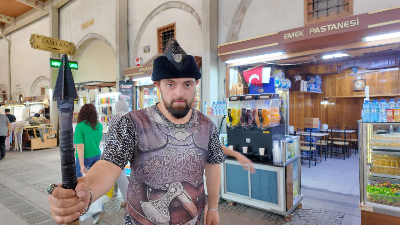 Kahramanmaraş’ın 500 yıllık Kapalı Çarşısı, tarihi dokusunun yanı sıra artık bir gönül şövalyesiyle de anılıyor: Down sendromlu Emre Kala. Her sabah Osmanlı kıyafetleriyle çarşının kapısında nöbet tutan Emre, hem esnafın hem de ziyaretçilerin sevgilisi haline geldi.Börkü, alp ceylanı yeleği ve mızrağıyla adeta bir Osmanlı alpini andıran Emre, çarşıya giren herkesi gülümsetiyor. Çarşı esnafının “Kapalı Çarşı’nın Alp’i” dediği Emre, yıllardır süregelen bu rutiniyle Kapalı Çarşı’nın maskotu haline gelmiş durumda.