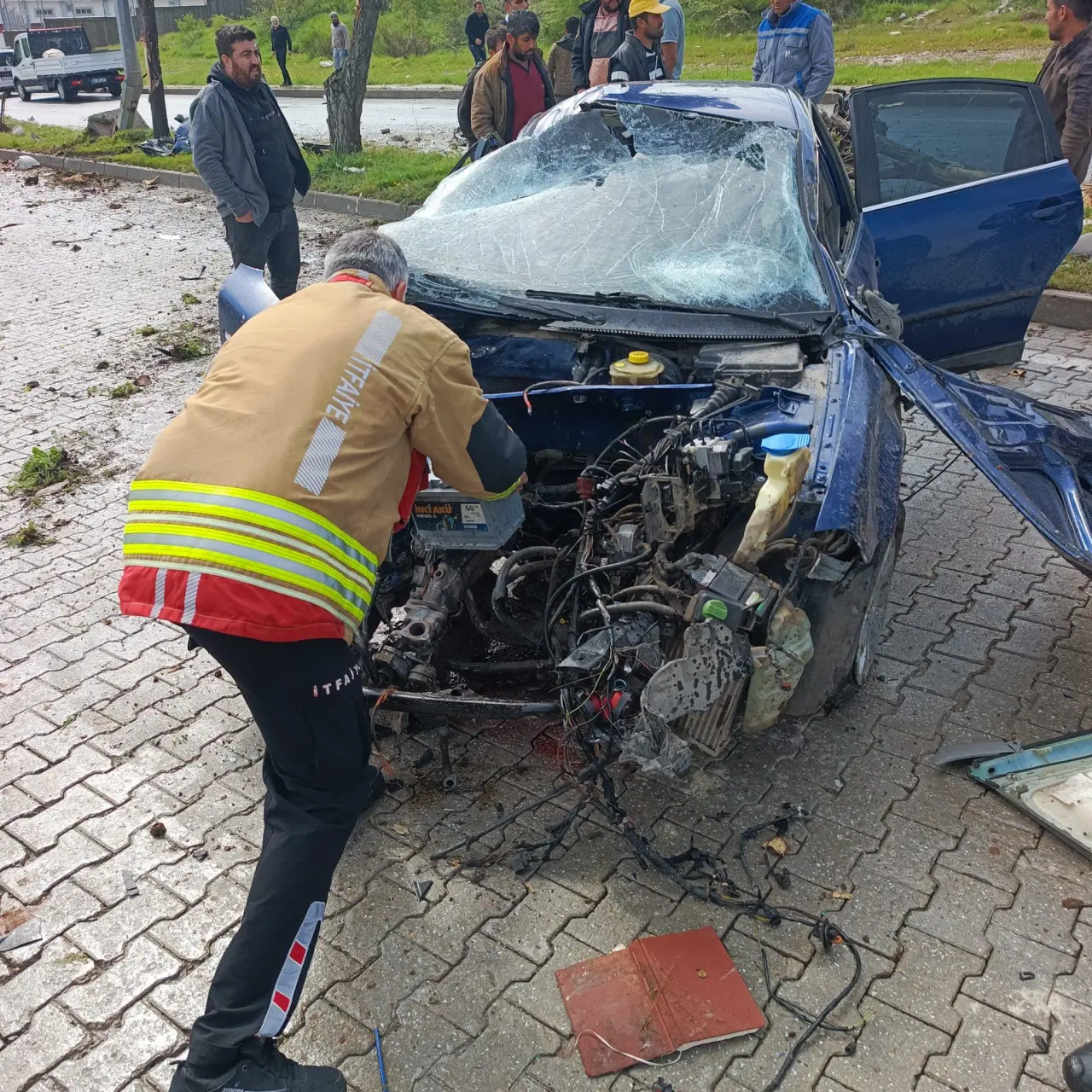 İhbar üzerine bölgeye itfaiye ve sağlık ekipleri sevk edildi. Kısa sürede olay yerine ulaşan itfaiye ekipleri, araçta sıkışan vatandaşı kurtarmak için çalışma başlattı.