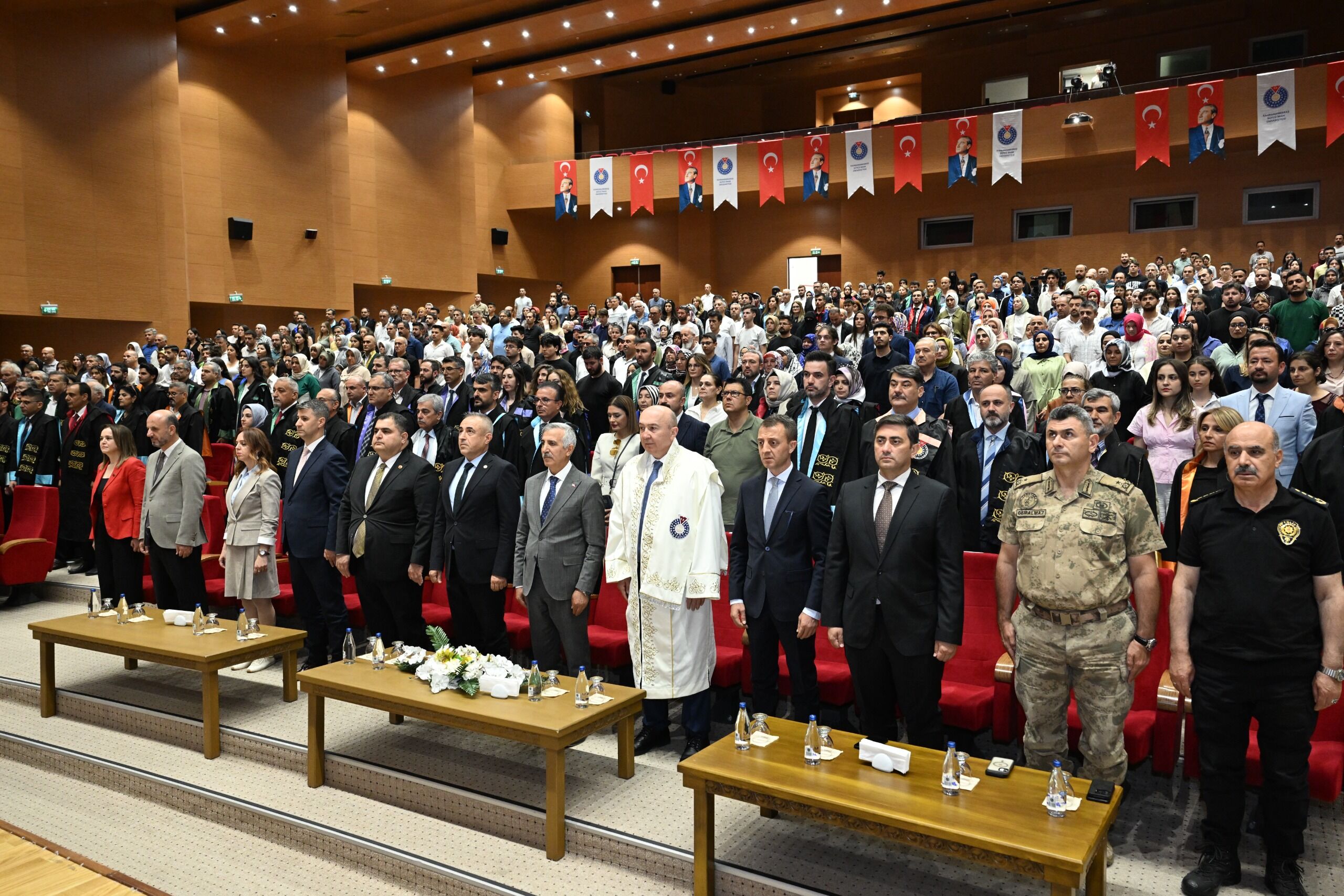 Ardından kürsüye çıkan Üniversite Birincisi, İktisadi ve İdari Bilimler Fakültesi öğrencisi Musa Kahveci, konuşmasında eğitimi boyunca yanında olan ailesine, hocalarına ve tüm katkı sunanlara teşekkür etti. Mezuniyetin bireysel değil, kolektif bir başarının ürünü olduğuna vurgu yaptı. Filistin’de yaşanan zulme de dikkat çekerek, “Sahip olduğumuz hakların değerini bilelim. Diplomalar sadece bir meslek belgesi değil; aynı zamanda vicdanımızı temsil eden insani sorumluluklardır.” dedi. Konuşmasını, çalışmanın ve toplumsal faydaya katkı sunmanın bir üniversite mezunu için asli sorumluluk olduğunu belirterek tamamladı.