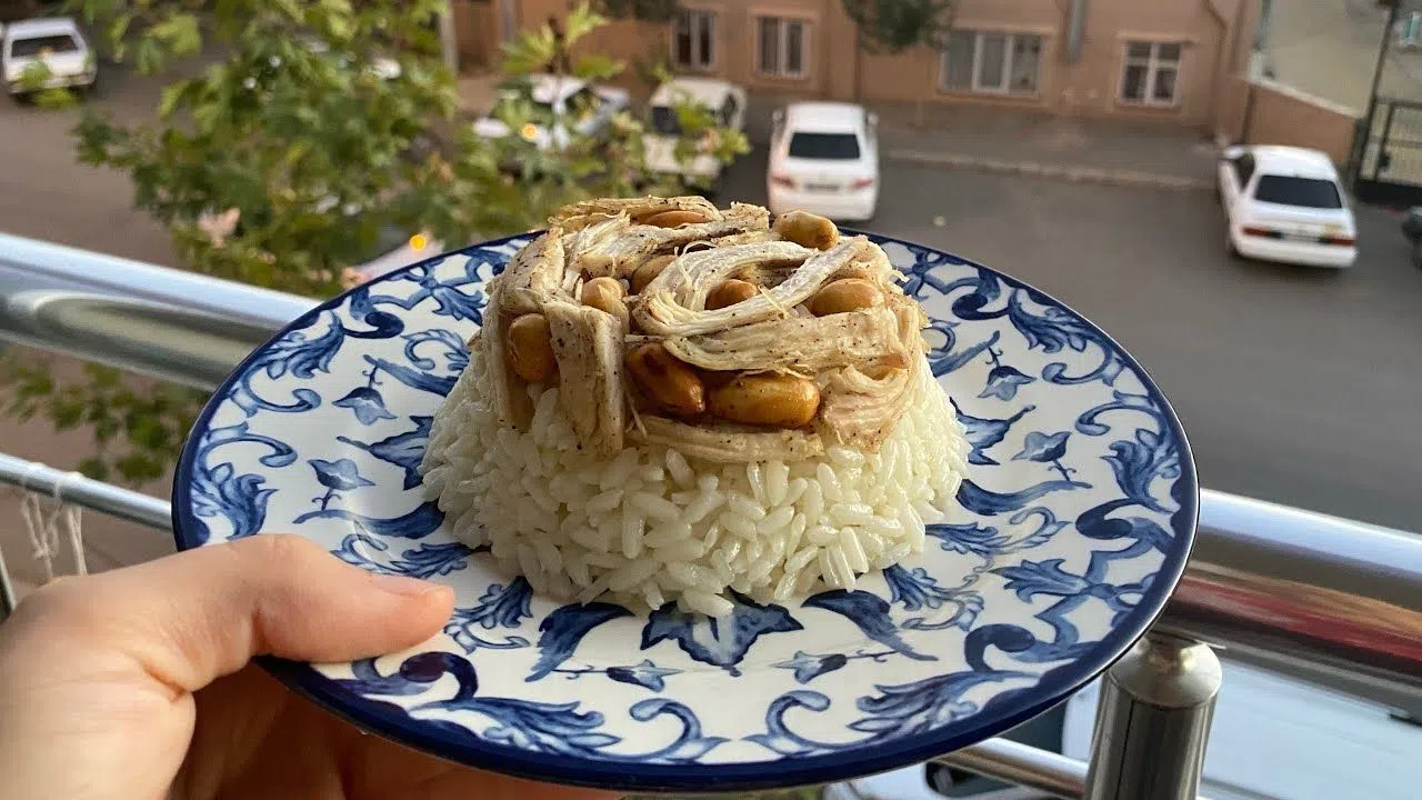 Tavuk, iki parmak geçecek kadar su ile büyük bir tencerede haşlanır. İçine bir bütün soğan eklenir, bu işlem hem hoş bir koku hem de derin bir tat sağlar. Haşlama işlemi 1.5 ile 2 saat arasında sürer, etin kemikten kolayca ayrılması hedeflenir. Aynı anda pirinç, üç parmak geçecek kadar kaynar su ile ıslatılır ve iki saat bekletilir.