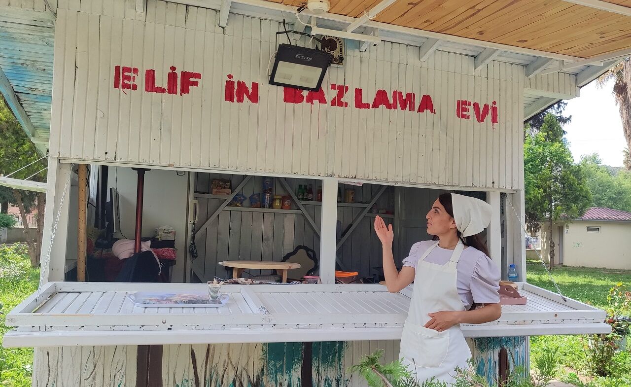 Türkoğlu ilçesi Kadın Akademisi Zafer Parkı'ndaki kulübesinde bazlama ve gözleme yaparak evinin geçimini sağlayan ve çocuklarının ihtiyacını karşılayan 28 yaşındaki Elif Kaplan, cesaret edip kendi işini kuramayan kadınlara örnek olmak istiyor.