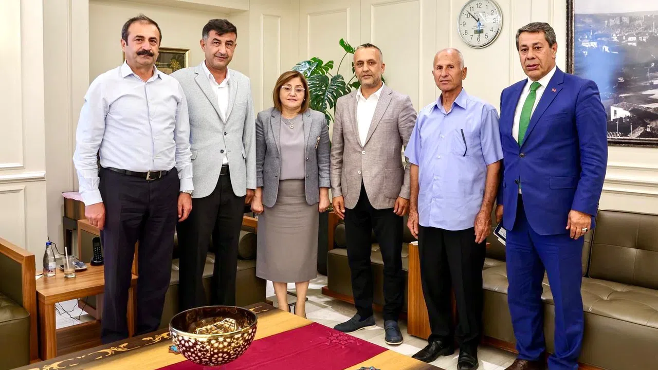 Kahramanmaraş Ziraat Odaları İl Koordinasyon Kurulu Başkanı Kahramanmaraş Ziraat Odası Başkanı Mehmet Çetinkaya, beraberinde Pazarcık Ziraat Odası Başkanı Hacı Ali Çiftepala, Türkoğlu Ziraat Odası Başkanı Mustafa Akkaya ve Çağlayancerit Ziraat Odası Başkanı Ömer Çedene ile birlikte Gaziantep Büyükşehir Belediye Başkanı Fatma Şahin’i ziyaret etti.