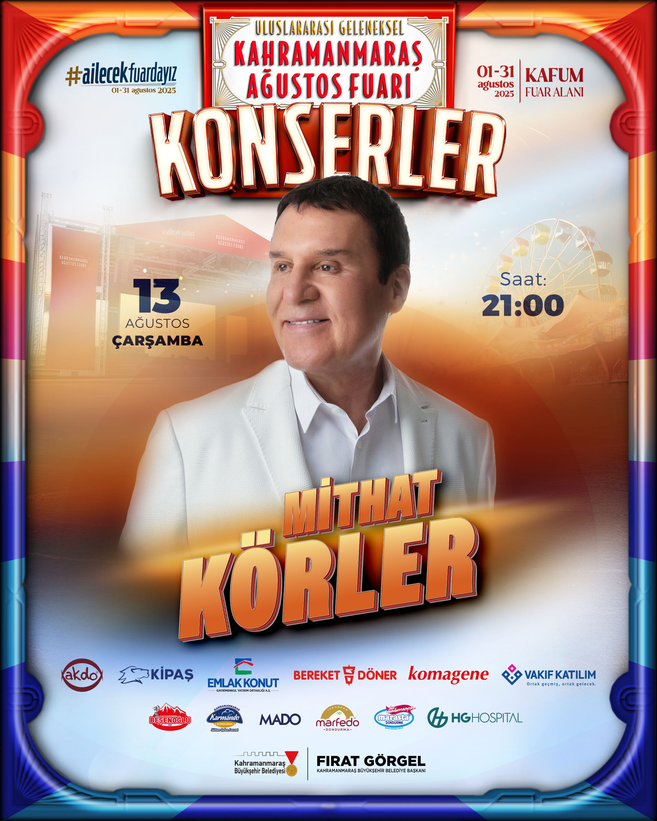 Büyükşehir Belediyesinin Geleneksel Ağustos Fuarı’nda 13 Ağustos Çarşamba günü Türk pop müziğin efsane ismi Mithat Körler sahne alacak. Kariyeri boyunca romant...