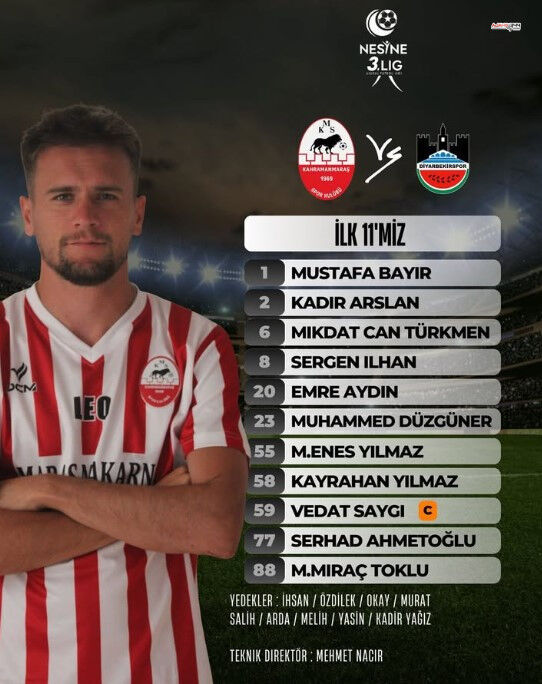 TFF 3. Lig 2. Grup’ta mücadele eden Karpedo Dondurma Kahramanmaraşspor, ligin 15. haftasında evinde Diyarbekirspor ile mücadeleye çıkacak. Karşılaşma 20 Aralık Cumartesi günü (bugün) saat 13:00'te Batıpark Adem Şahan Stadyumunda oynanacak. Oynanacak karşılaşma YaaY tv ve sıfır tv youtube ekranlarından takip edilebilecek.