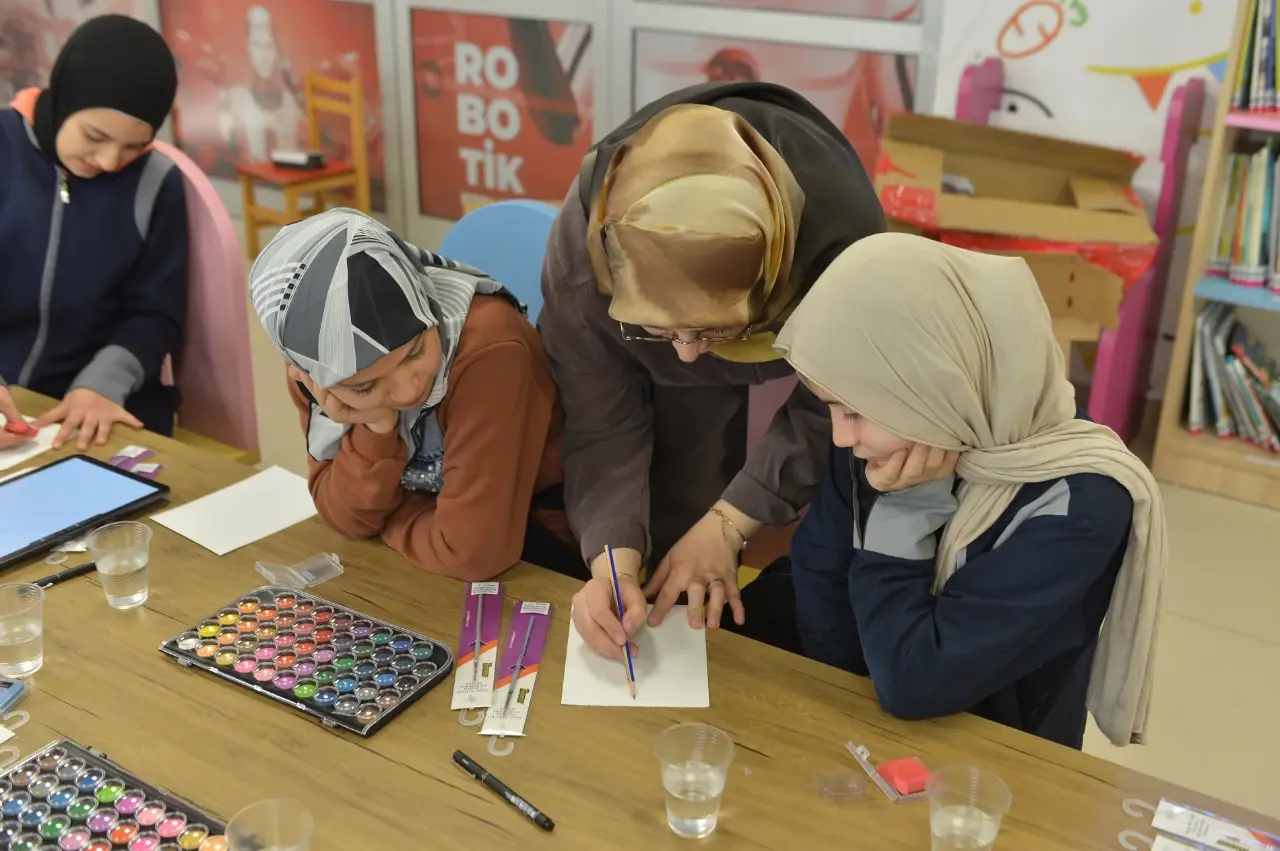 Rasim Özdenören Çocuk Kütüphanesi'nin huzurlu atmosferinde gerçekleşen atölye çalışması, çocukların kütüphane ile olan bağını güçlendirmeyi hedefledi. Eğitmen ve çizer Fatma Betül Yıldız eşliğinde gerçekleştirilen çalışmada çocuklar, profesyonel çizim tekniklerini deneyimleme şansı yakaladı. Yıldız, "Kütüphane Haftası kapsamında çocuklarımızla bir kitabın yayınlanma serüvenini adım adım ele aldık. Birlikte bir hikâyenin görsel dünyasını inşa ettik. Hem öğretici hem de çocuklarımızın sosyalleşebileceği çok keyifli bir ortam oluştu" dedi. Atölye sonunda çocukların mutluluğu ve yaptıkları resimlerle verdikleri pozlar günün en değerli karesi oldu.
