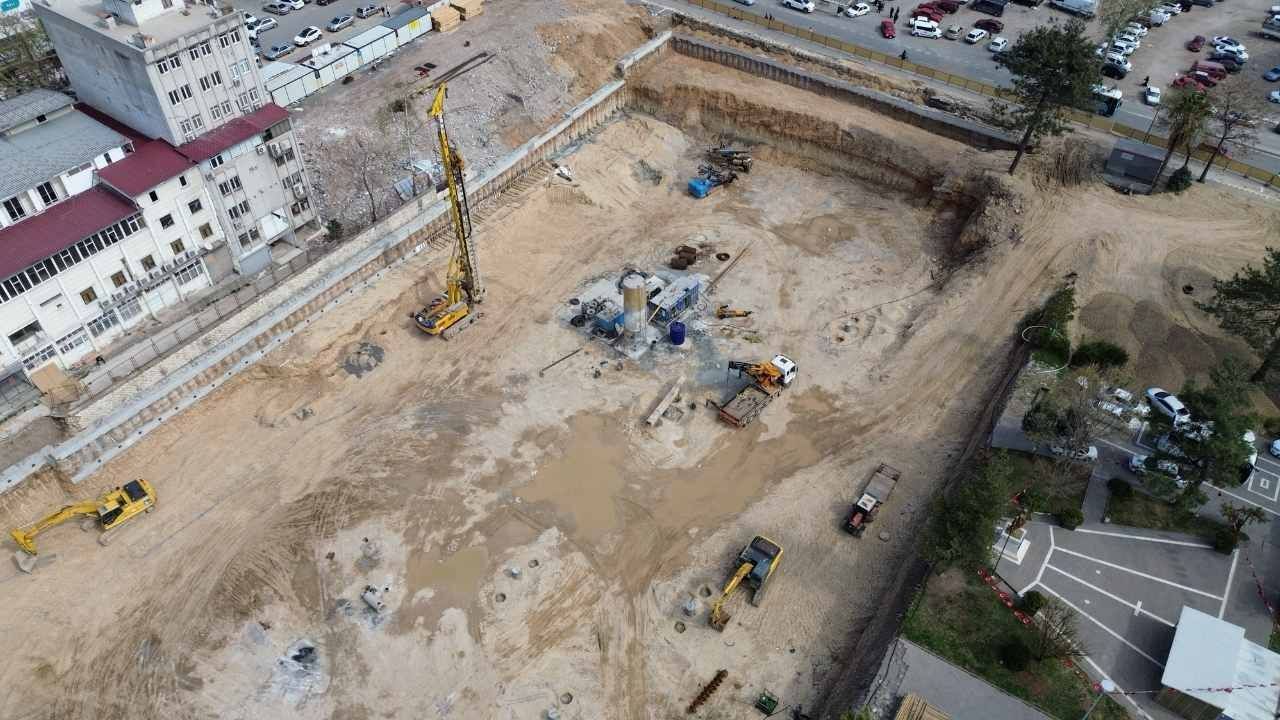 Dulkadiroğlu İlçesi Trabzon Caddesi’nde yer alan ve depremler nedeniyle ağır hasar gören eski binanın yerine inşa edilen yeni valilik binasının temel kazı çalışmalarının tamamlanmasının ardından fore kazık çalışmaları başladı.