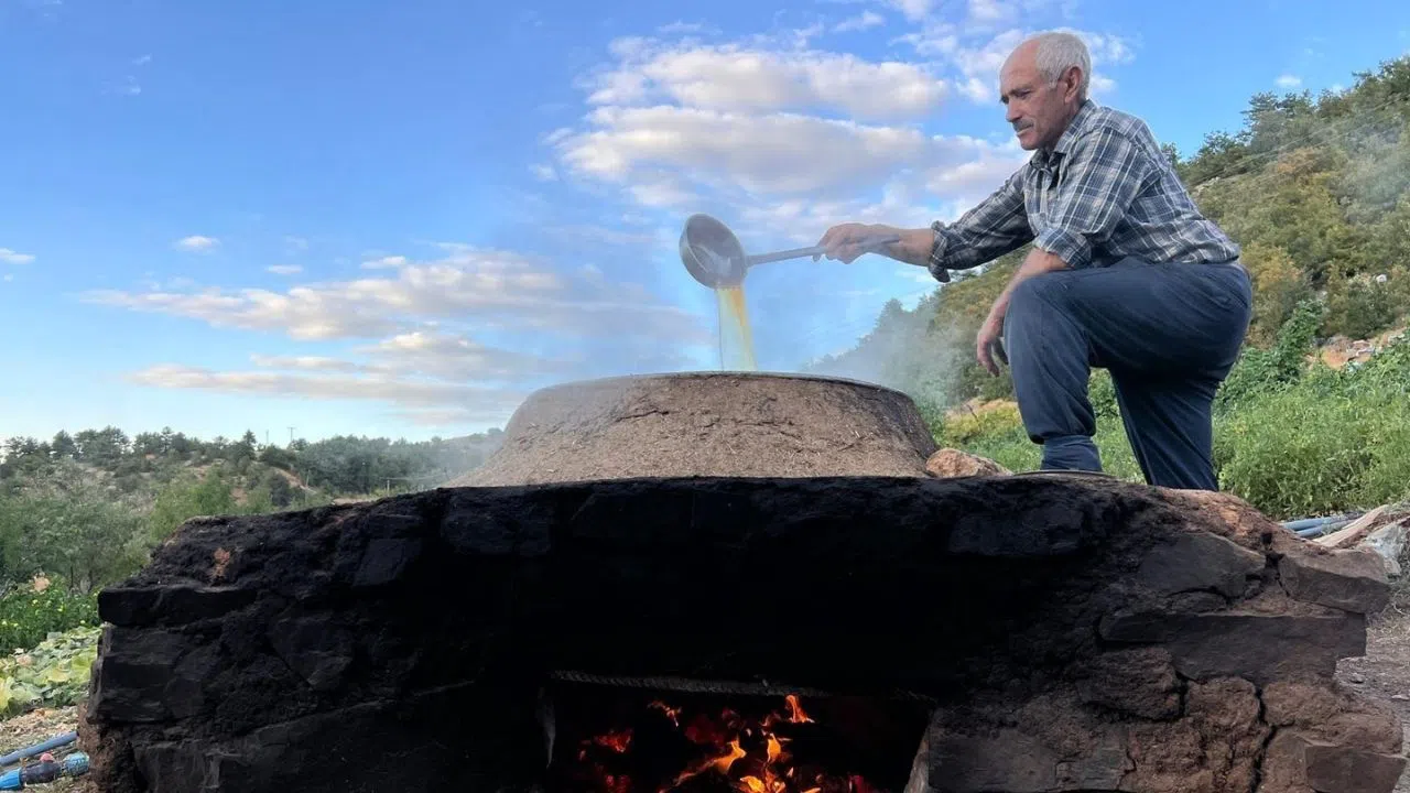 Kahramanmaraş’ın Ekinözü ilçesinde bağ bozumunun tamamlanmasıyla birlikte köylerde kış hazırlıkları hız kazandı. Özellikle bölgenin meşhur Maraş Kabarcık üzümünden yapılan pekmez, köylülerin odun ateşinde kaynattıkları kazanlarda eski usullerle hazırlanıyor.