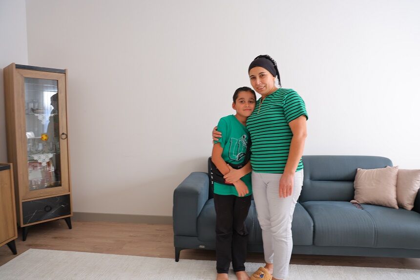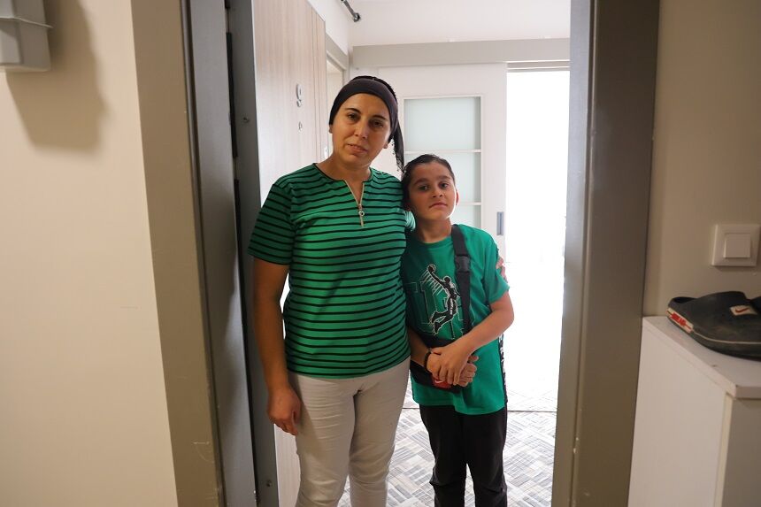Onikişubat ilçesi Tekerek Mahallesi'ndeki yaşadıkları ev ağır hasar alan Hatice Keten ve ailesi tamamlanan Baykar konutlarına yerleşti.