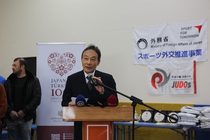 Büyükelçi Takahiko Katsumata, “Türkiye Judo Federasyonu’nun talebi üzerine Türkiye’de judoyu yaygınlaştırmak ve depremden etkilenen bölgelere destek olmak amacıyla Japonya Judo Federasyonu tarafından temin edilen 63 adet çocuk judo kıyafeti Türkiye Judo Federasyonu aracılığıyla, bölgedeki judo salonuna bağışlanacaktır. Tedarik edilen judo kıyafetleri, Japonya Hükümeti ve özel kuruluşlar iş birliği ile yürütülen bir uluslararası spora katkı projesi olan ’Gelecek için Spor’ (Sport for Tomorrow) projesinin bir parçasıdır. Japonya, Tokyo 2020 Olimpiyat Oyunları’nın spor mirasını sürdürüp geliştirirken, sporun ihtiyaç ve zorluklarına göğüs germek ve bir arada yaşayan bir toplum oluşturmak amacıyla 2014 yılından bu yana dünya çapında 200’den fazla ülkede ’Gelecek için Spor’ projeleri gerçekleştirmektedir.