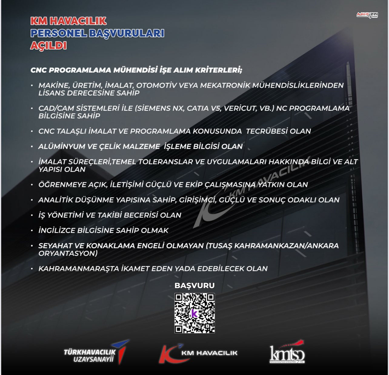 Detaylı bilgi ve başvuru için ilgili platformlarda yayınlanan iş ilanındaki QR kodunun taranması veya şirketin resmi başvuru kanallarının takip edilmesi gerekiyor. KM Havacılık, savunma ve havacılık alanında kariyer yapmak isteyen mühendisleri, bu projenin bir parçası olmaya davet ediyor.