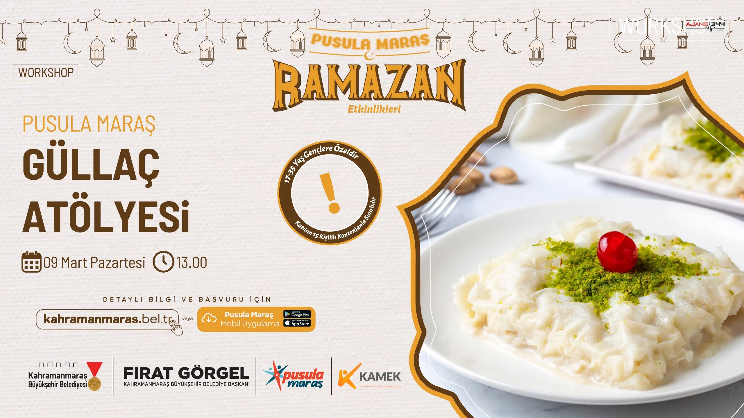 Kahramanmaraş Büyükşehir Belediyesinin gençlik projeleri kapsamında faaliyetlerini sürdüren Pusula Maraş, Ramazan ayına özel etkinliklerine bir yenisini daha ekliyor. Düzenlenecek olan “Güllaç Yapım Atölyesi”, gençlerin geleneksel mutfak kültürüyle tanışmasına katkı sağlamayı amaçlıyor.