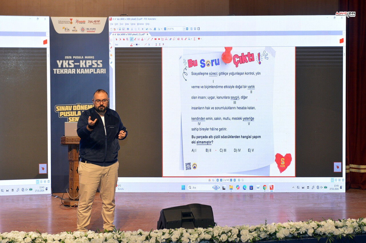 Görgel’in öncülüğünde, Pusula Maraş koordinasyonuyla yürütülen YKS kampı, Mehmet Akif Ersoy Kültür Merkezi’nde yoğun katılımla sürüyor. Bu kapsamda gerçekleştirilen Türkçe dersi oturumunda, alanında uzman isimler İbrahim Karataş ve Osman Ömür Neslihanoğlu öğrencilerle bir araya geldi. Ders boyunca sınava yönelik kritik noktalar, çözüm yolları ve zaman yönetimi gibi konularda öğrencilerle değerli bilgiler paylaşıldı.