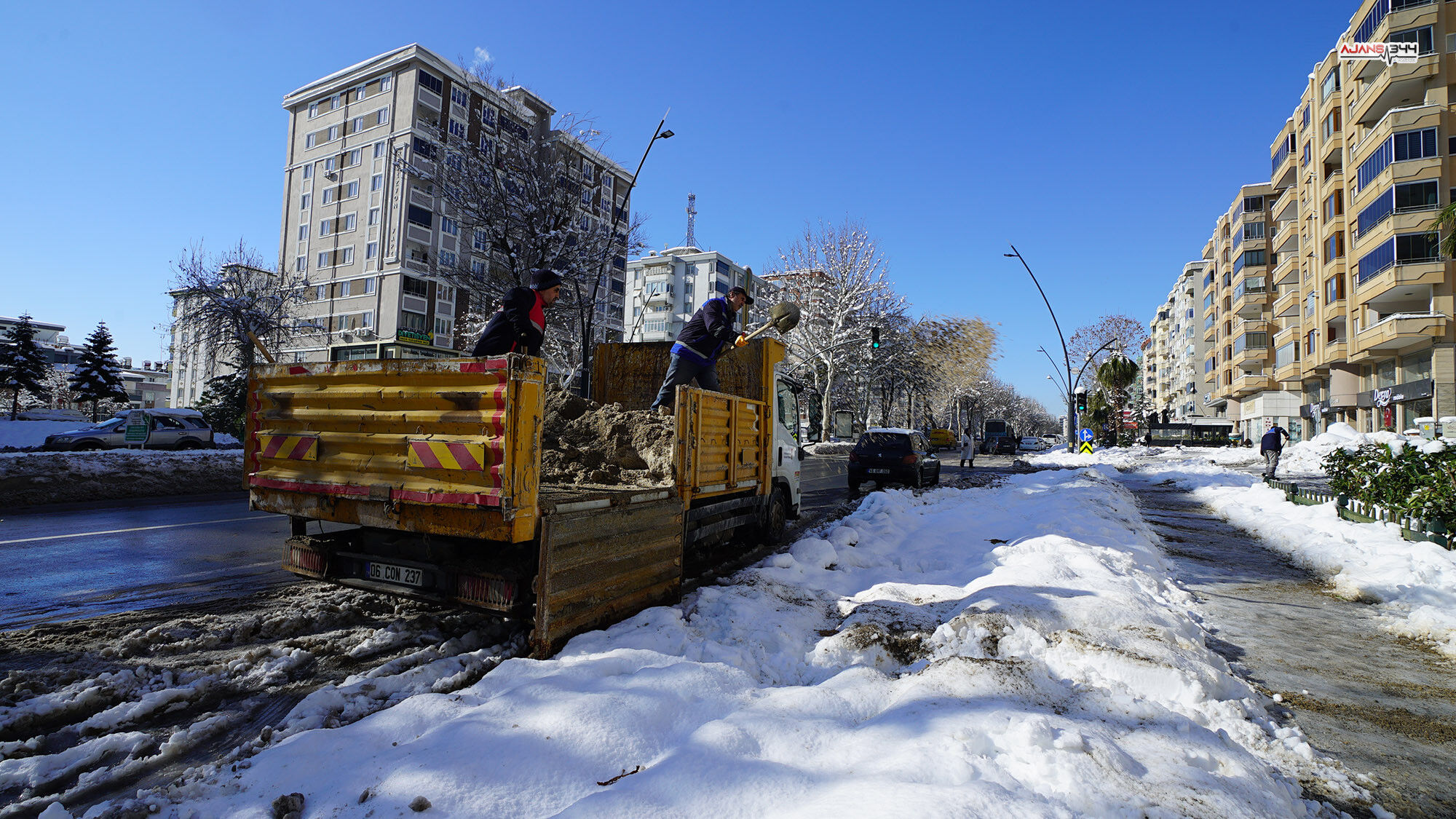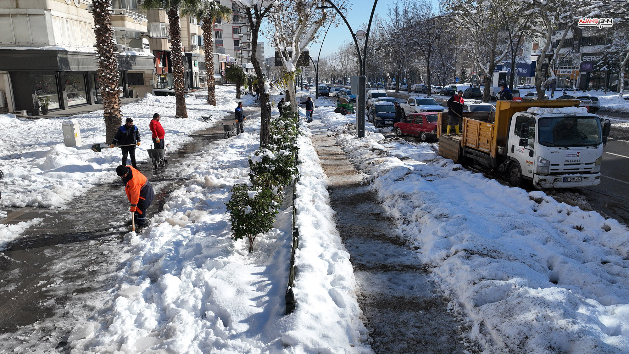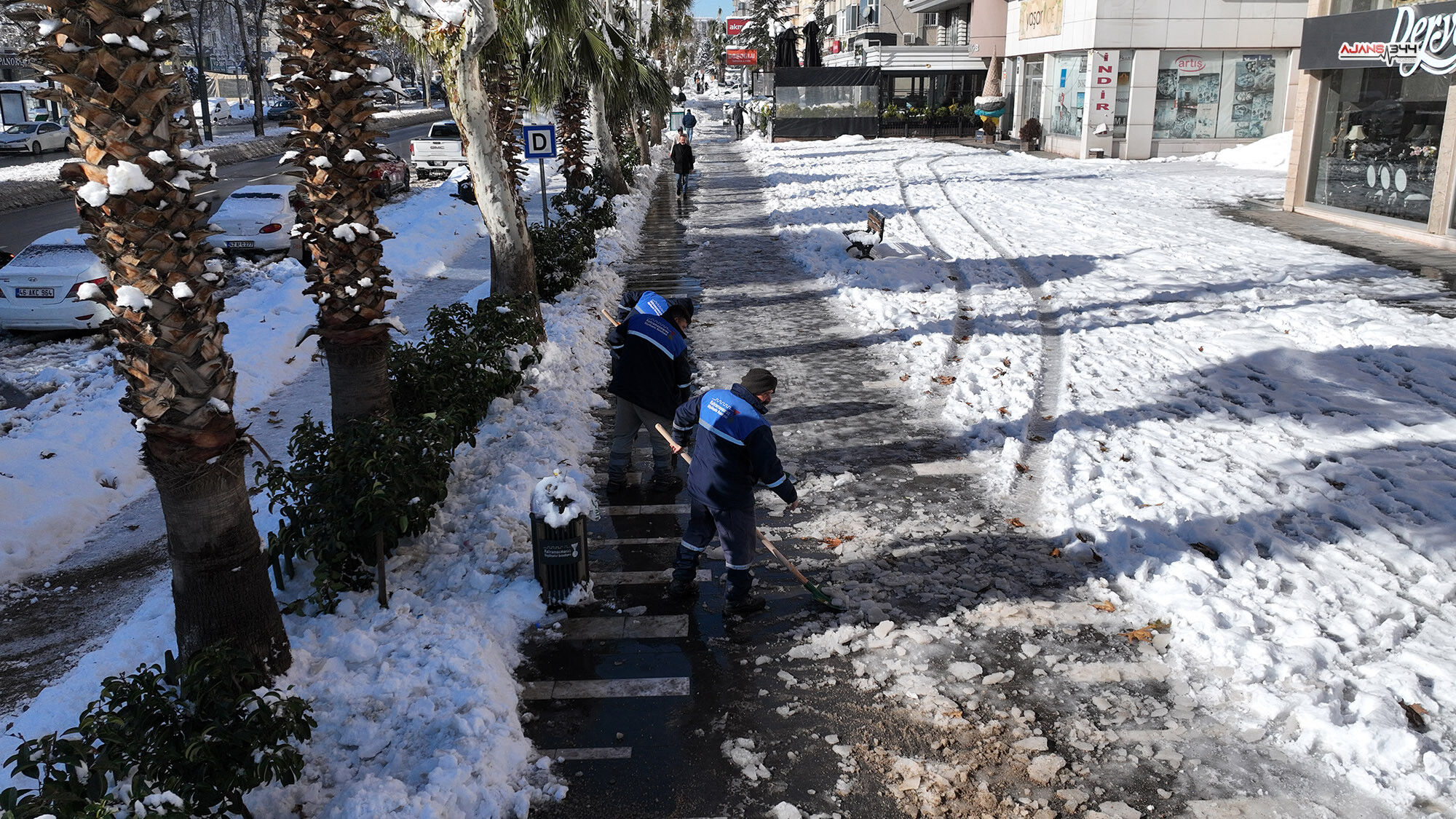 Kar yağışının etkili olduğu Kahramanmaraş’ta Büyükşehir Belediyesi ekipleri, yollar ve kaldırımlarda 7/24 kar küreme ve tuzlama çalışması yaparak ulaşımda aksamaların önüne geçiyor.
