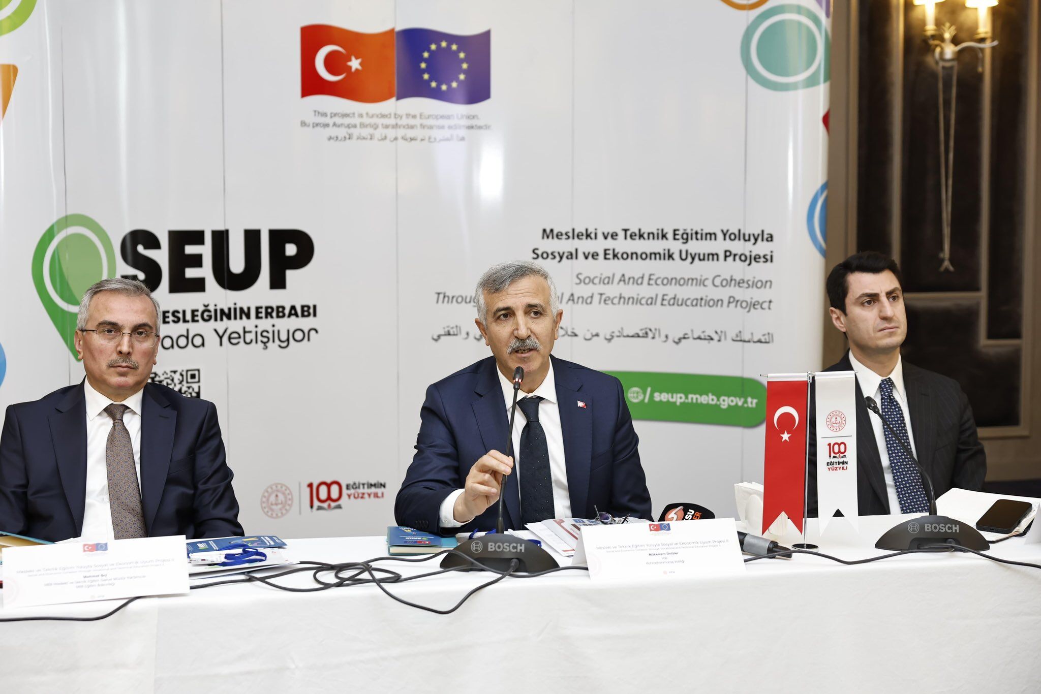 Toplantıya Kahramanmaraş Valisi Mükerrem Ünlüer, Milli Eğitim Bakan Yardımcısı Muhammet Bilal Macit, İl Milli Eğitim Müdürü Erhan Baydur, Bakanlık yetkilileri, İl Milli Eğitim Müdürlüğü yöneticileri, SEUP proje temsilcileri, Ticaret ve Sanayi Odası yöneticileri, Esnaf ve Sanatkârlar Odası yetkilileri ile sektör temsilcileri katıldı.