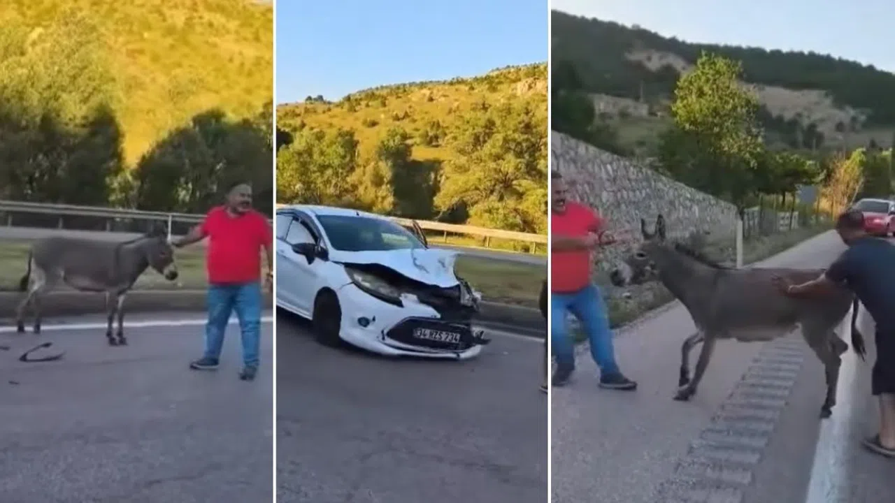 Edinilen bilgilere göre, akşam saatlerinde gerçekleşen olayda sürücüsü henüz belirlenemeyen otomobil, yol kenarından aniden yola çıkan eşeğe çarpmamak için manevra yapmasına rağmen çarpışmayı engelleyemedi. Çarpmanın etkisiyle eşeğin ayağı kırıldı.