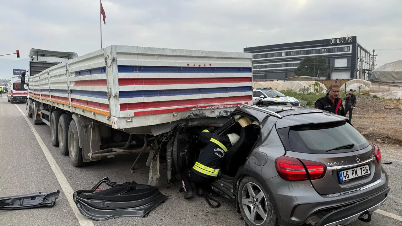 Kaza, Kahramanmaraş-Adana karayolu üzerinde meydana geldi. Alınan bilgiye göre, Mercedes marka 46 PN 757 plakalı otomobil sürücüsünün direksiyon hakimiyetini kaybetmesi sonucu aynı istikamette giden tırın altına girdi.