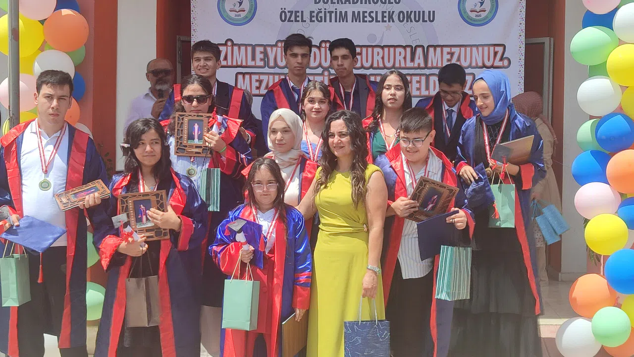 Dulkadiroğlu İlçesi Özel Eğitim Meslek Okulu'nda özel gereksinimli çocuklar için mezuniyet programı düzenlendi. Öğrenciler törenle mezuniyet belgelerini aldı. Yoğun bir katılımla gerçekleştirilen törende pasta kesimi, kep atma ve balon uçurma gibi etkinliklerde yapıldı.