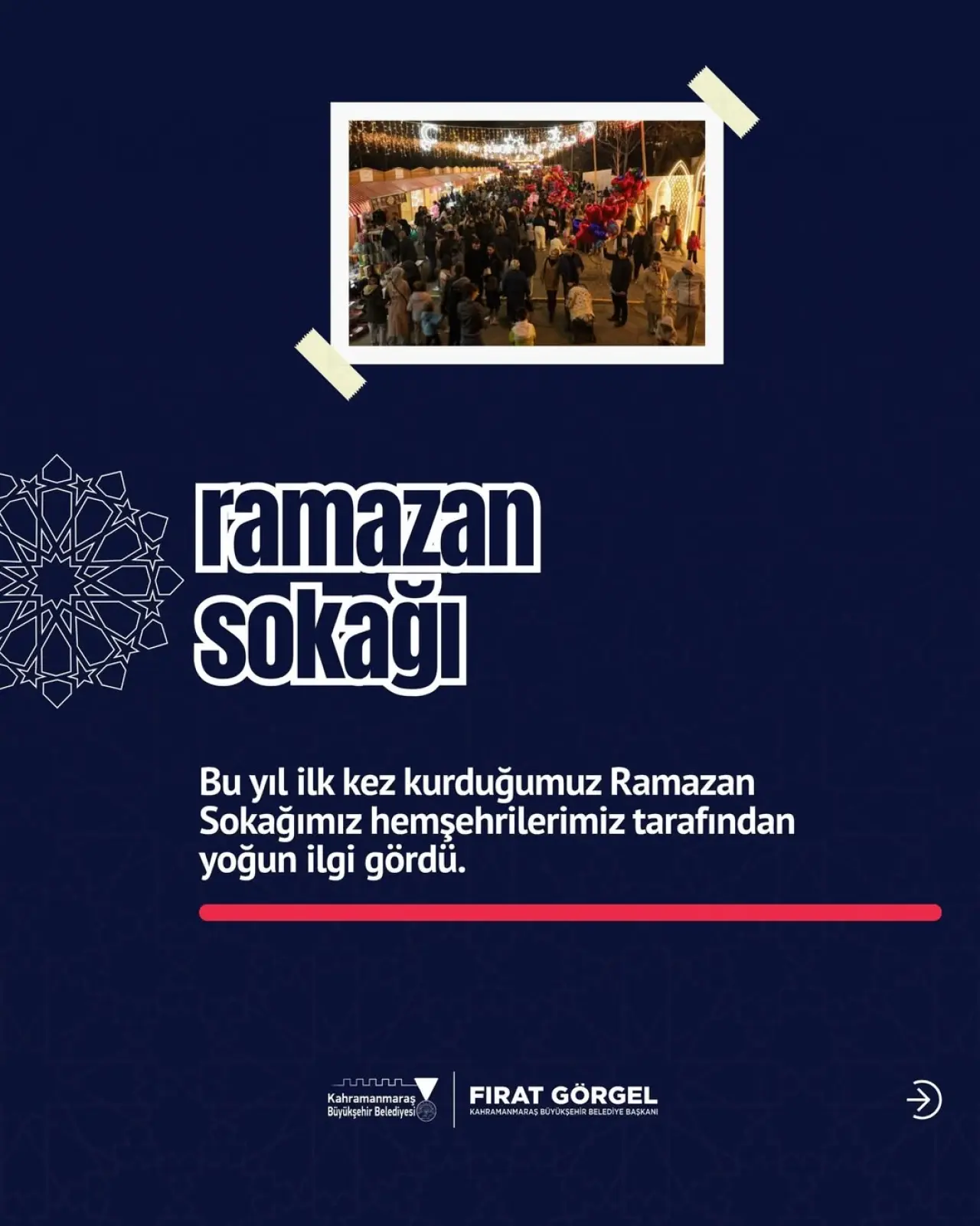 Şehirde ilk kez hayata geçirilen Ramazan Sokağı projesi, vatandaşlardan yoğun ilgi gördü. Geleneksel etkinliklerden kültürel programlara, çocuklara yönelik aktivitelerden dinletilere kadar birçok etkinliğin düzenlendiği alanda, Ramazan ayının manevi atmosferi canlı tutuldu.