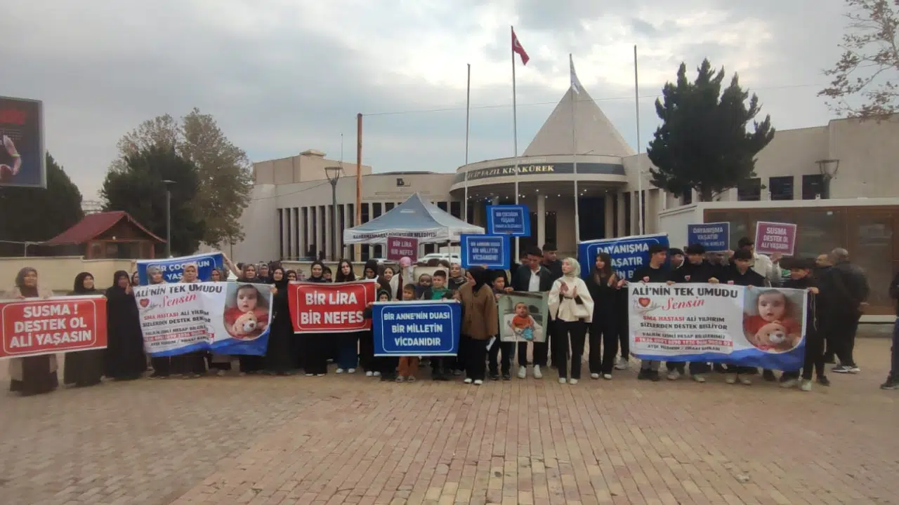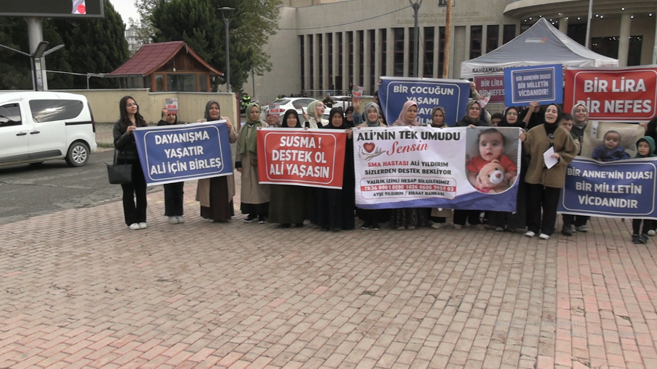 Kahramanmaraş'ta SMA Tip 1 kas hastası olan Ali bebek için ailesi ve gönüllüler tarafından umut kampanyası başlatıldı. Necip Fazıl Kültür Merkezi önünde bir araya gelen kalabalık, Ali bebeğin tedavisi için maddi destek sağlanması ve toplumsal farkındalık oluşturulması amacıyla seslerini duyurmaya çalıştı.