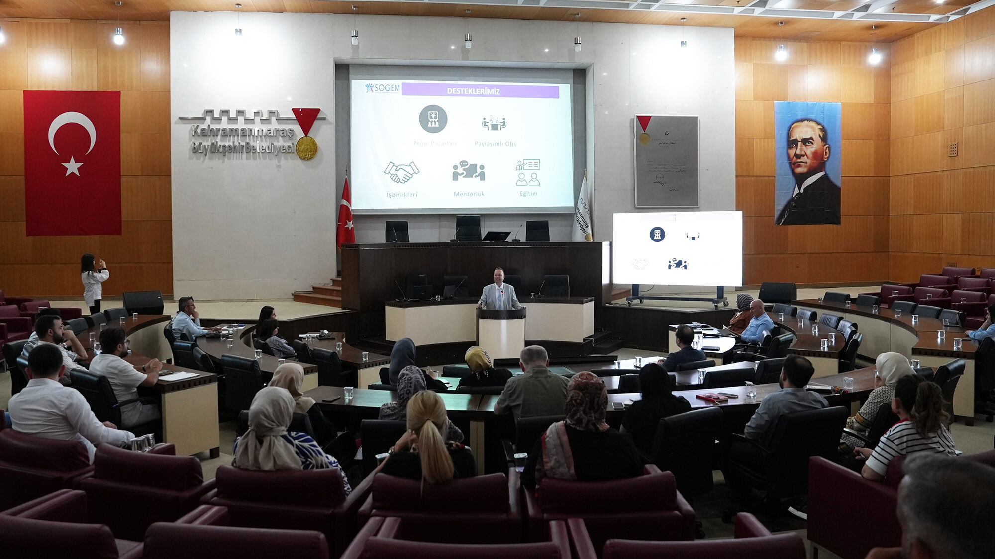 Toplantının açılış konuşmasını gerçekleştiren Büyükşehir Belediyesi Dış İlişkiler Dairesi Başkanı Erdoğan Emrah Hatunoğlu, Büyükşehir Belediyesi öncülüğünde şehre kazandırılan Sosyal Girişimcilik Merkezi (SOGEM) hakkında kapsamlı bilgiler paylaştı. Hatunoğlu, merkezin gençlere, kadınlara, dezavantajlı gruplara ve girişimci adaylarına yönelik sunduğu eğitim ve danışmanlık hizmetleriyle, şehirde sosyal kalkınmayı desteklediğini belirtti.