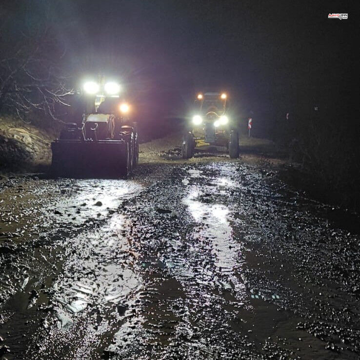 Yoğun yağışla birlikte yollara taşınan çamur, taş ve çeşitli rusubatlar temizlik ekipleri tarafından gece boyunca temizlendi. İş makineleri ve süpürge araçlarıyla yapılan çalışmalar sonucu cadde ve sokaklar yeniden güvenli hale getirildi.