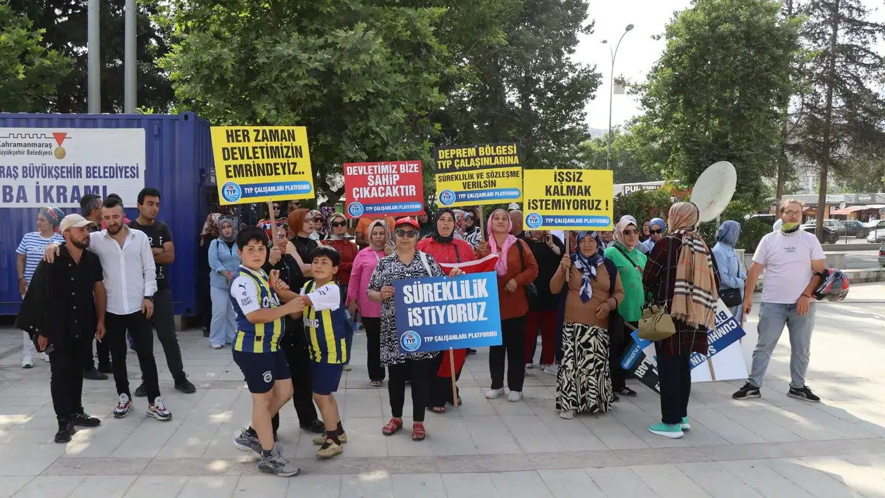 Yapılan açıklamada şu ifadeler yer aldı; “Bizler ‘Asrın Felaketi’ olarak kayıtlara geçen ve 50 binden fazla canımızı kaybettiğimiz 6 Şubat depremlerinin merkez üssü Kahramanmaraş'tan sesleniyoruz. Toplum Yararına Program (TYP) kapsamında geçici sürelerle çalışan TYP'liler olarak, yaşadığımız mağduriyetleri ve taleplerimizi kamuoyuyla paylaşmak istiyoruz. Deprem bölgelerinde ilk haftadan itibaren, başta AFAD olmak üzere diğer birçok kurumda gönüllü olarak yer aldık. Gece gündüz, yağmur çamur demeden sahada koştuk. Çünkü o gün dayanışma günümüzdü. Birçoğumuz evini ve işini kaybetti. Yakınlarımızı, canlarımızı kaybettik. O gün acılarımızı bir kenara koyarak yardıma koştuk, devletimize destek olmak asli görevimizdi. Devletimiz de bizleri el üstünde tutarak deprem bölgelerinde TYP kapsamında işe aldı. Ancak henüz toparlanmaya başlarken, sürelerimiz bitti ve iş çıkışlarımız verildi. Şu an işsiz kaldık ve mağduriyetler yaşıyoruz. Birçoğumuz hâlâ konteynerlerde kalıyoruz.