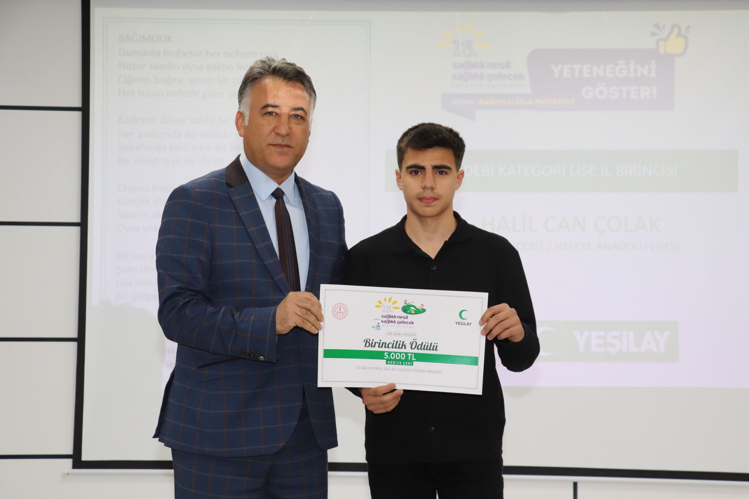 Millî Eğitim Bakanlığı ile Türkiye Yeşilay Cemiyeti iş birliğinde bu yıl 13.’sü düzenlenen “Sağlıklı Nesil, Sağlıklı Gelecek Yetenek Yarışması”nın Kahramanmaraş ayağında ödüller sahiplerini buldu. Tören, İl Millî Eğitim Müdürlüğü Konferans Salonu’nda gerçekleştirildi.