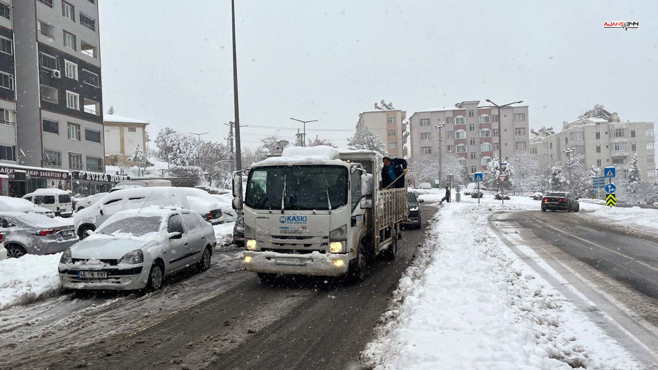 KASKİ, Kahramanmaraş’ta karla mücadeleye 53 araçla destek veriyor. Ekipler, şehir merkezinde kar küreme, tuzlama ve solüsyon uygulamalarını sürdürüyor.